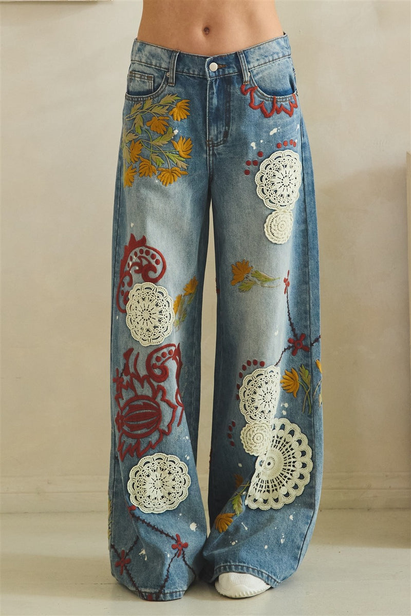 Vintage Bloom Embroidered Straight Leg Jeans