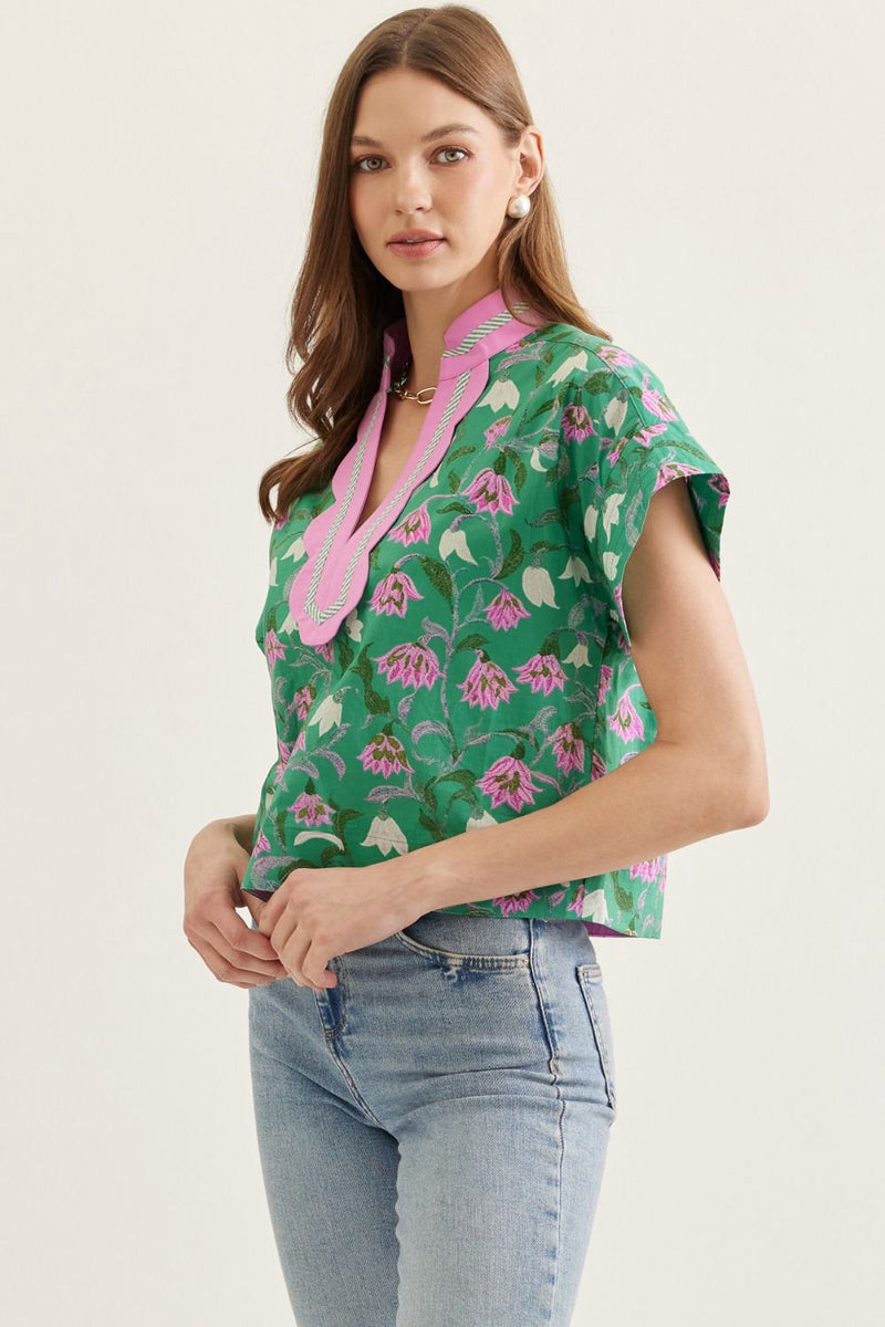 Botanical Scallop-Trim Split-V Top
