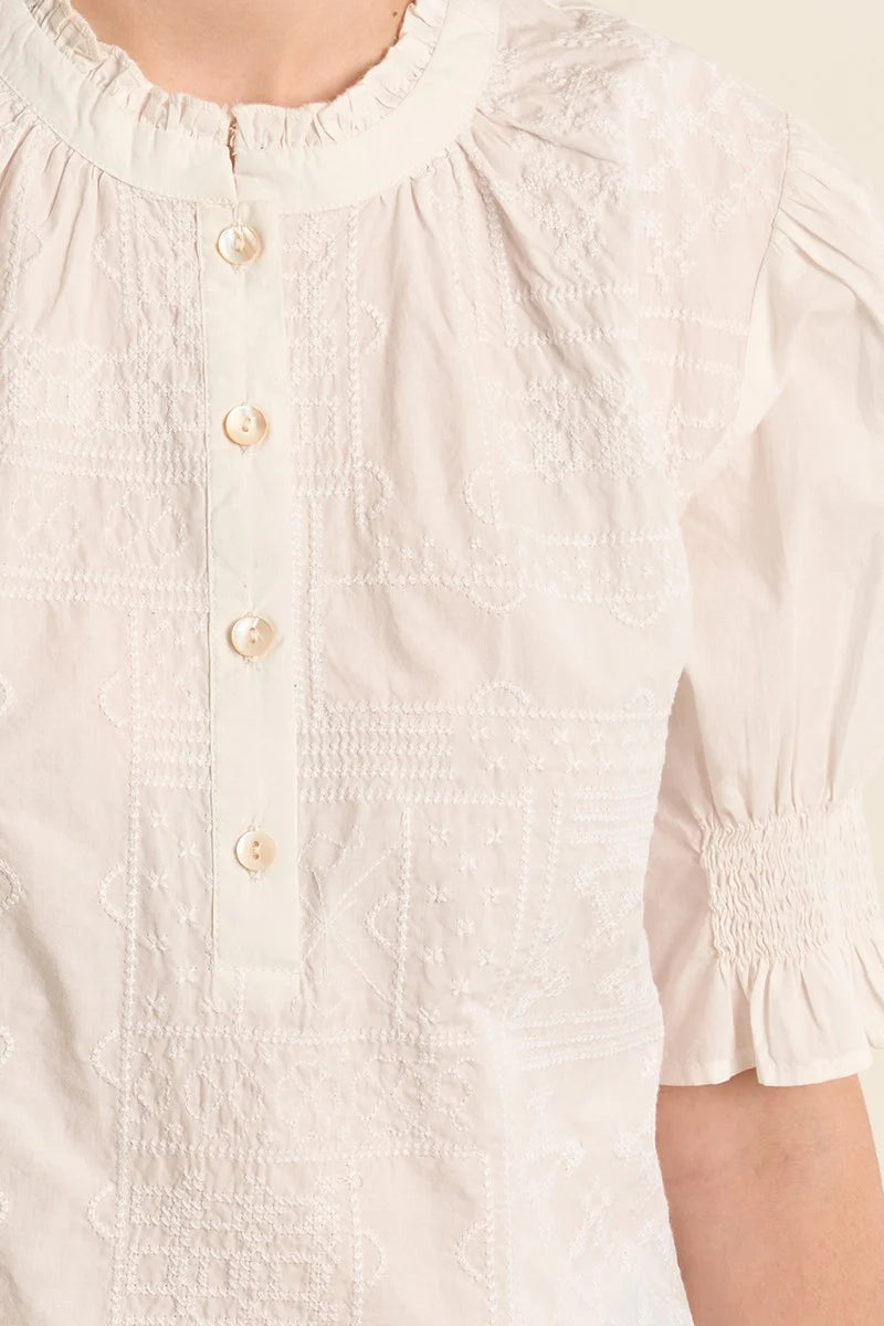 Molly Bracken Embroidered Ruffle Sleeve Top