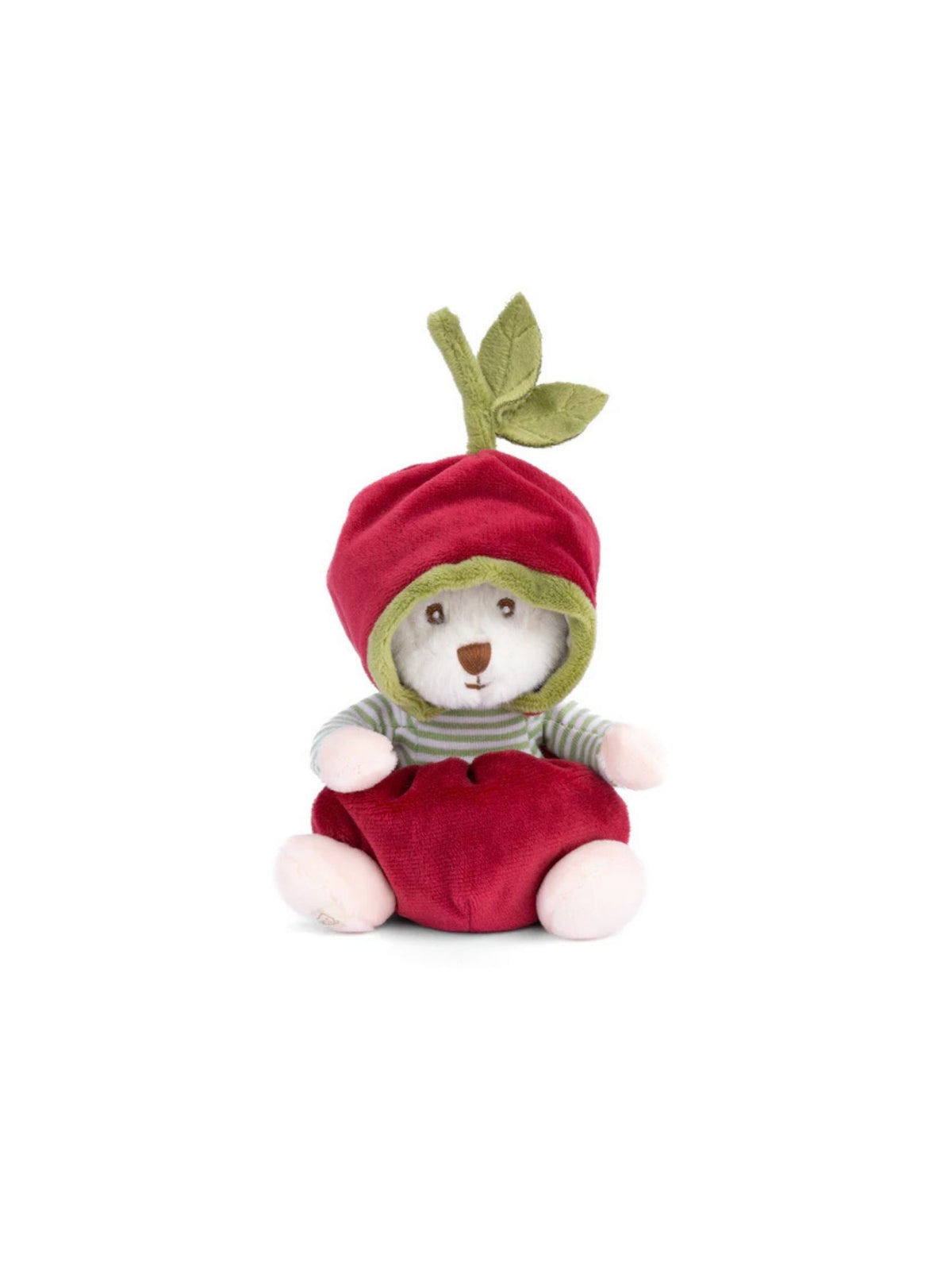 Add a touch of sweetness to your collection with Ziggy Cherry Bear! This soft and cuddly cherry costume is perfect for little hands. The stem hood reveals cute round ears, while the striped shirt showcases Bukowski Bear's attention to detail. Sweeten your moments with Ziggy Cherry on top!