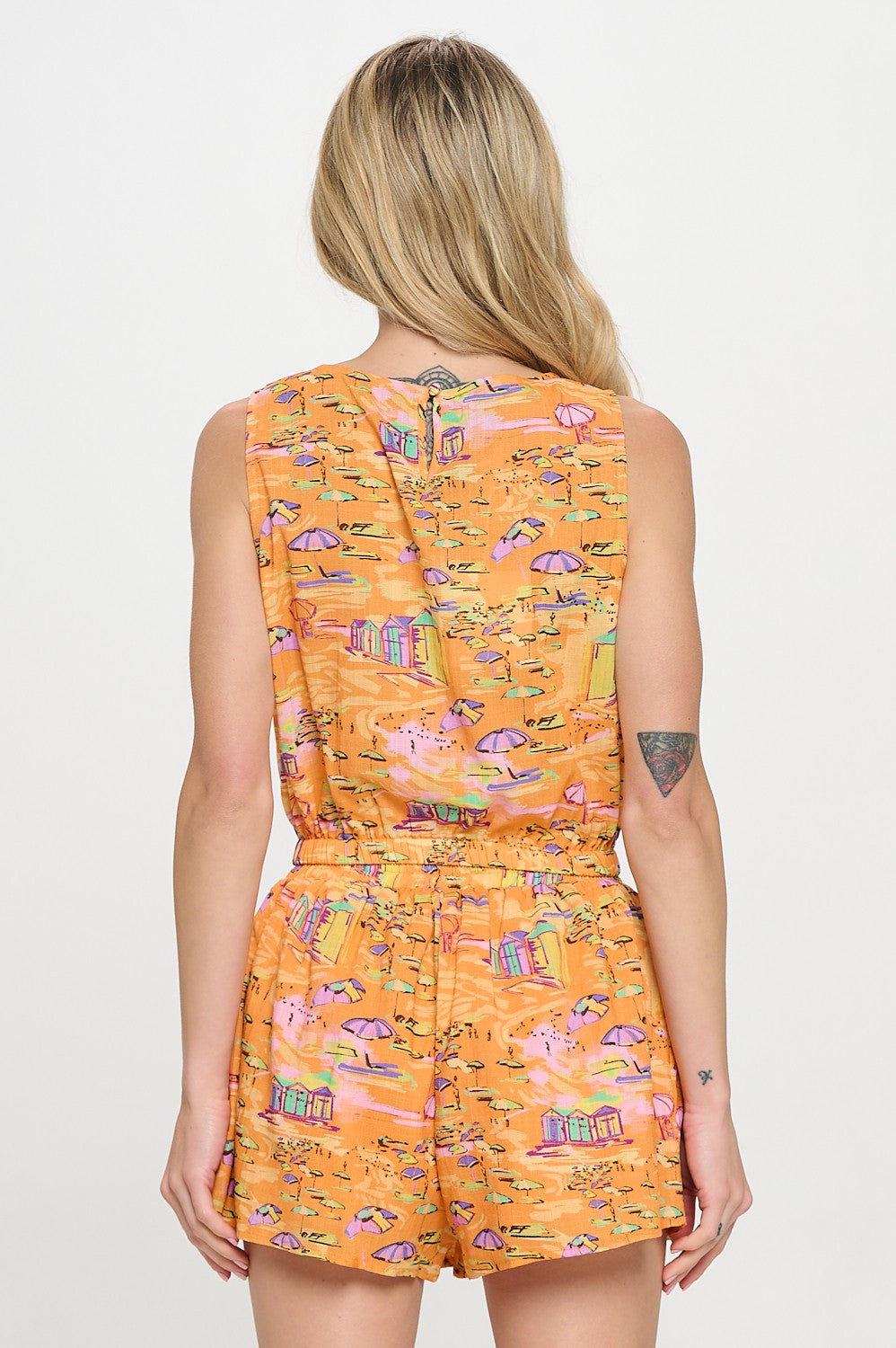 Unleash your playful and bold side with our Golden Shoreline Set - the perfect companion for beachside adventures and sunny days. Featuring a sleeveless crop top and high-rise shorts in a vintage-inspired printed fabric. The elastic waistband and side pockets add practicality to this cheerful set, making it a must-have for resort lounging, city explorations, or casual getaways. This coastal-cool ensemble will brighten up any destination!