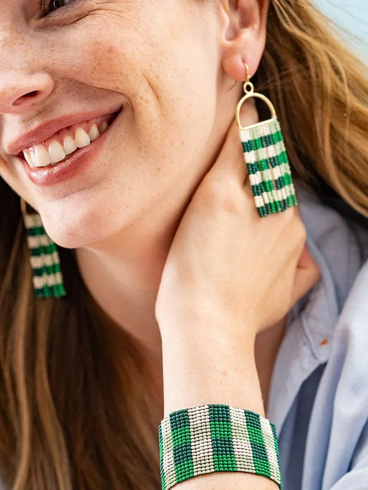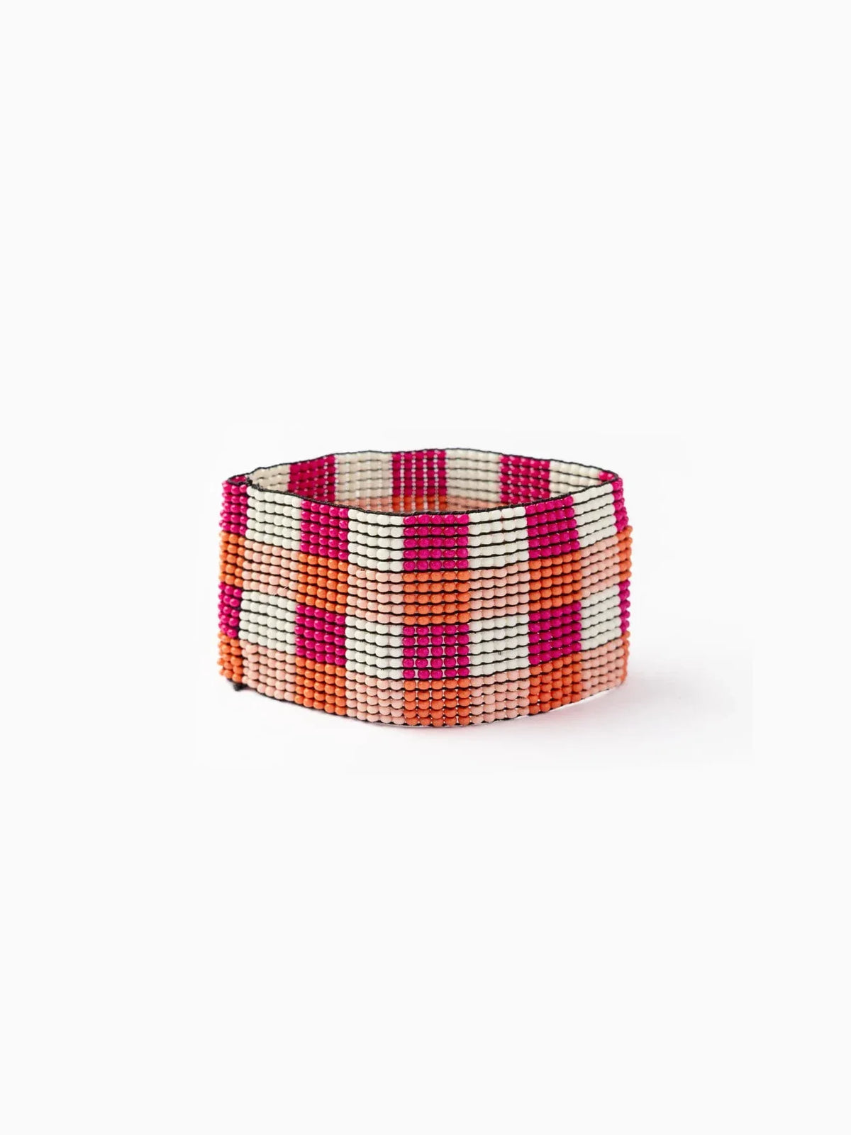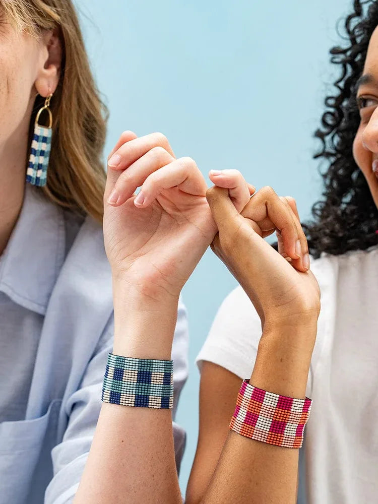The Kendall Gingham Beaded Stretch Bracelet showcases a checkered gingham design with multicolor seed beads. It's perfect for the modern cool girl with its unique and eye-catching style. Thin and stretchy, it offers a comfortable fit while making a stylish statement.
