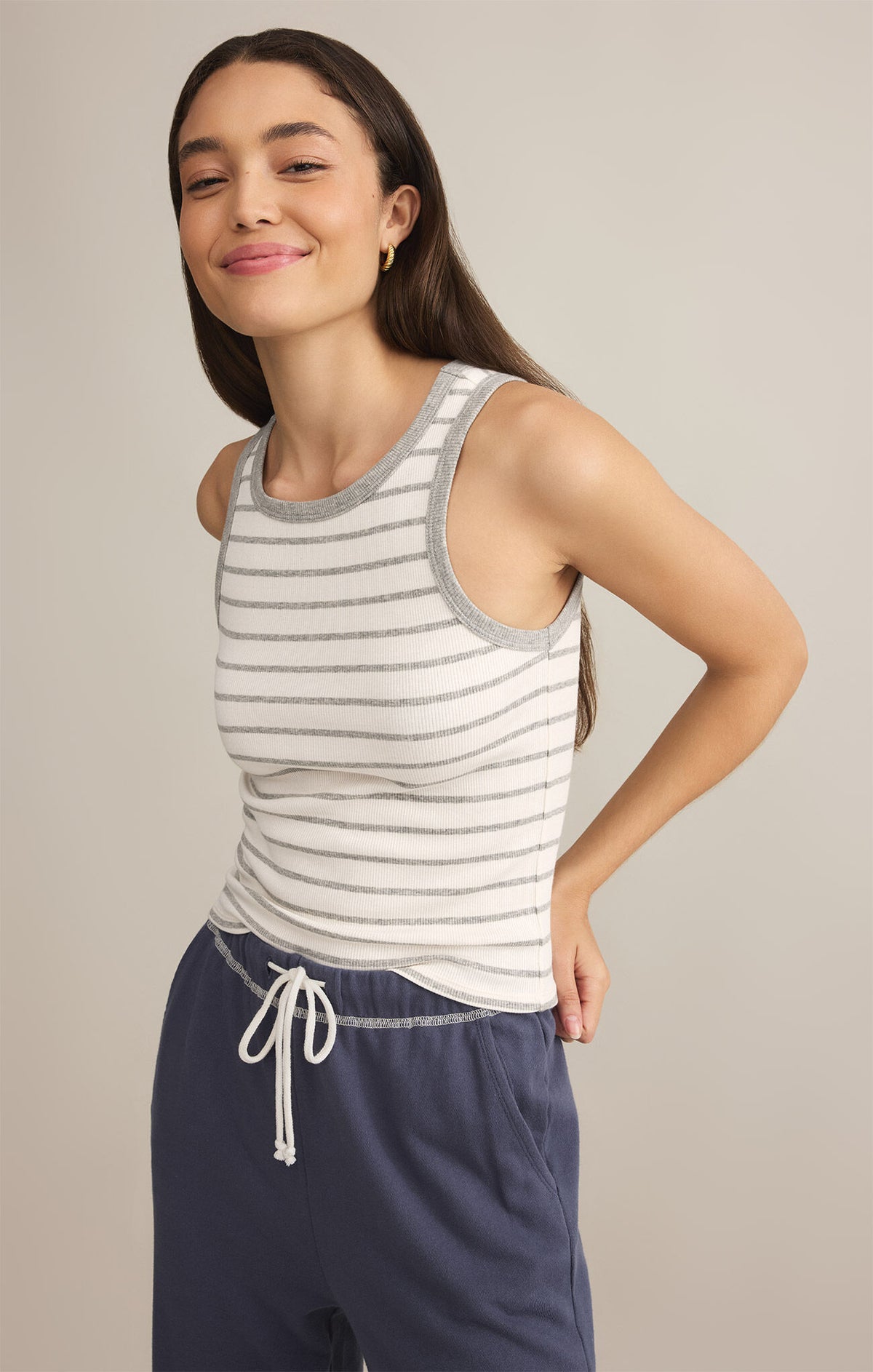 The Z SUPPLY Hadley Striped Tank is a must-have for any wardrobe. Soft and sleek, this tank can be layered or worn on its own. The classic stripes and contrast color add a stylish touch while the bra-friendly design and comfy ribbed fabric make it perfect for everyday wear. It's a go-to piece that you'll love wearing season after season.