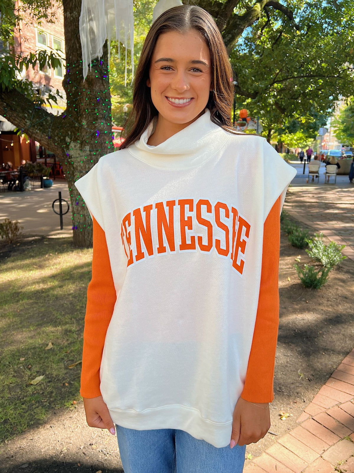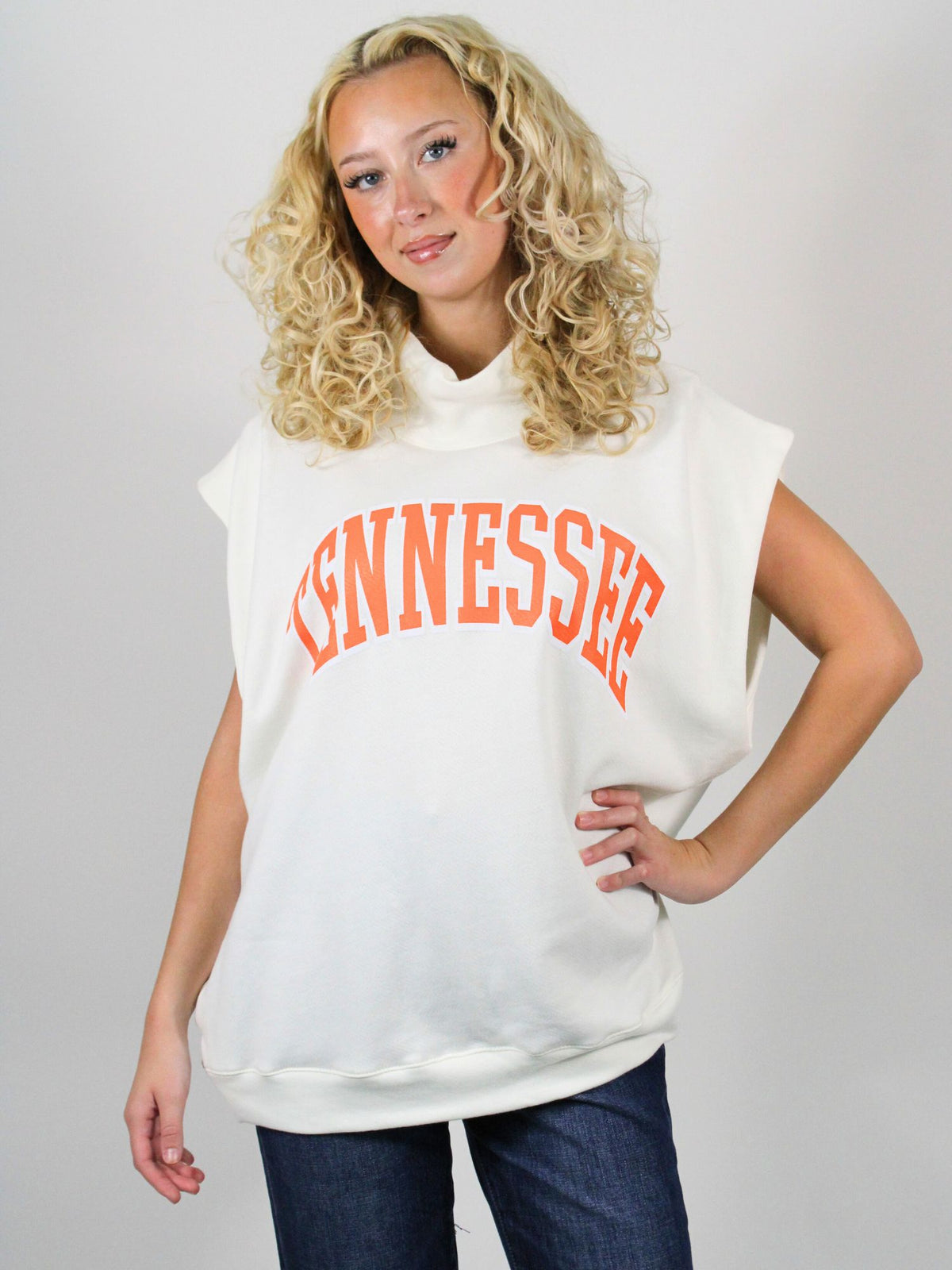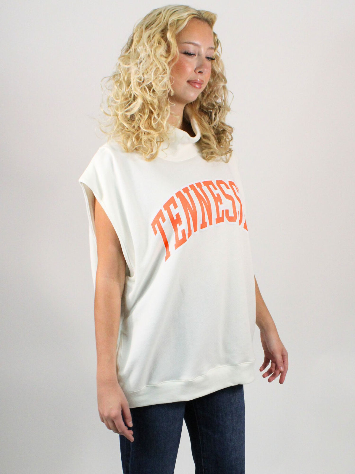 Show your team spirit in style with this Tennessee Oversized Muscle Top. Featuring bold orange TENNESSEE lettering across the front, this sleeveless top boasts extra-large armholes for a relaxed, airy fit. Perfect for game day or casual outings, its roomy cut keeps you cool while turning heads with vibrant school pride.