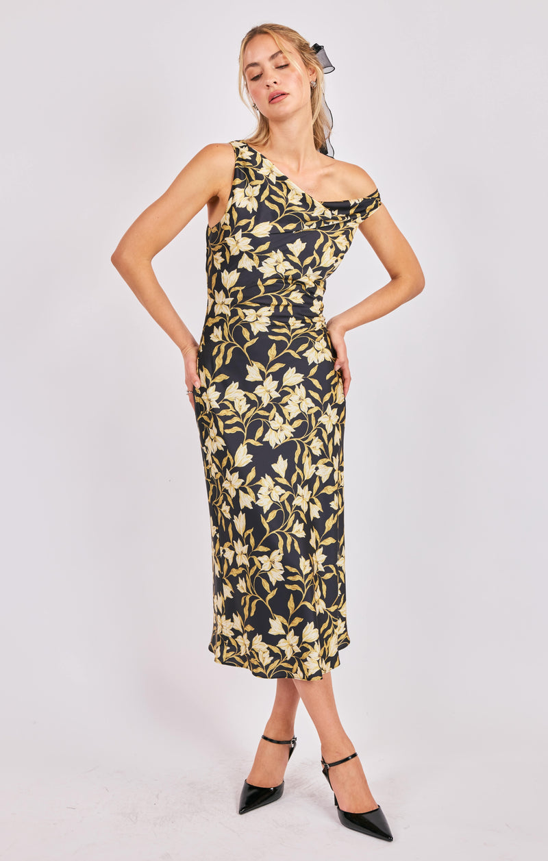 Gala Cowl Neck Floral Midi Dress