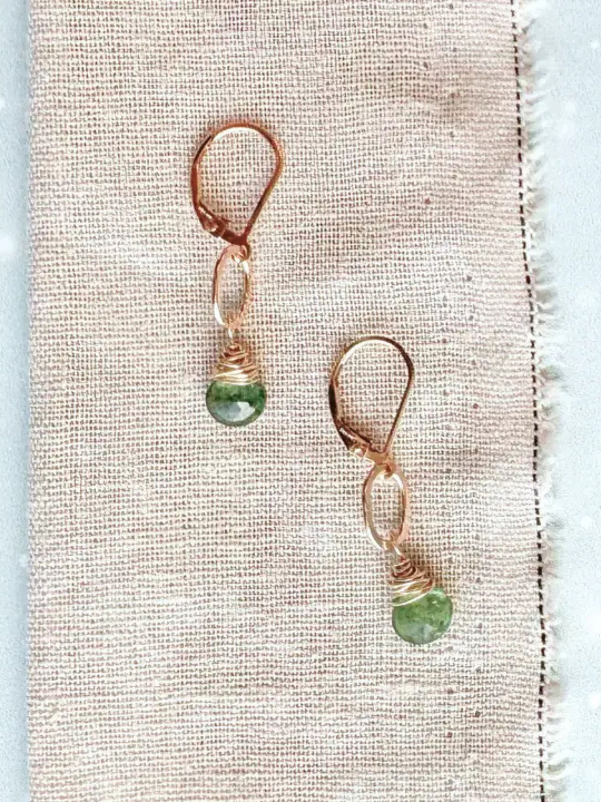 These playful earrings bring a splash of coastal charm to your look. Featuring small, hammered gold-filled ovals paired with vibrant peridot briolettes, they mix classic warmth with fresh sea-inspired hues. Perfect for capturing carefree seaside vibes, these earrings add a touch of beachy elegance wherever you go.