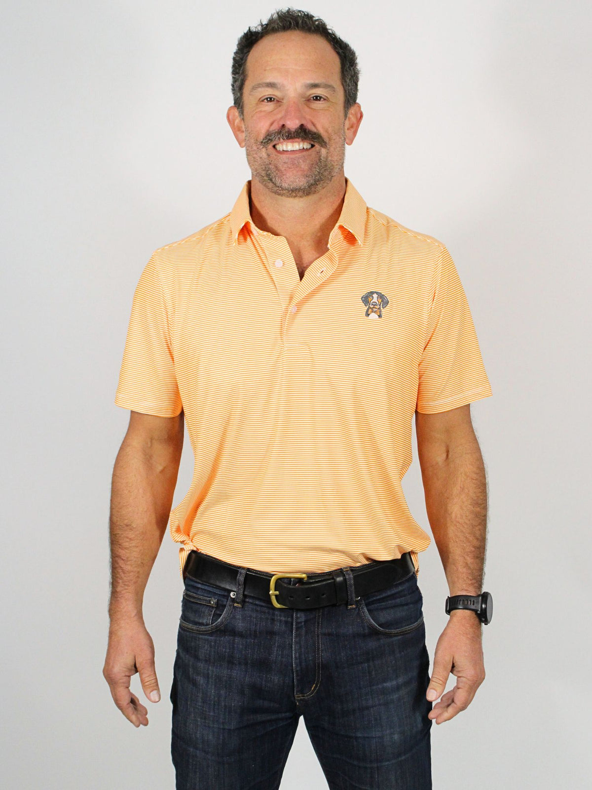 Rock the iconic orange and white of Tennessee Vols pride with this Mens Gameday Stripe Polo. Bold stripes celebrate your team spirit while the classic polo cut keeps you looking sharp whether you're cheering from the stands or tailgating with friends. Lightweight and comfortable, it's the perfect go-to for game days, casual hangouts, or any time you want to rep your Vols loyalty. Show your colors and let your passion shine through!