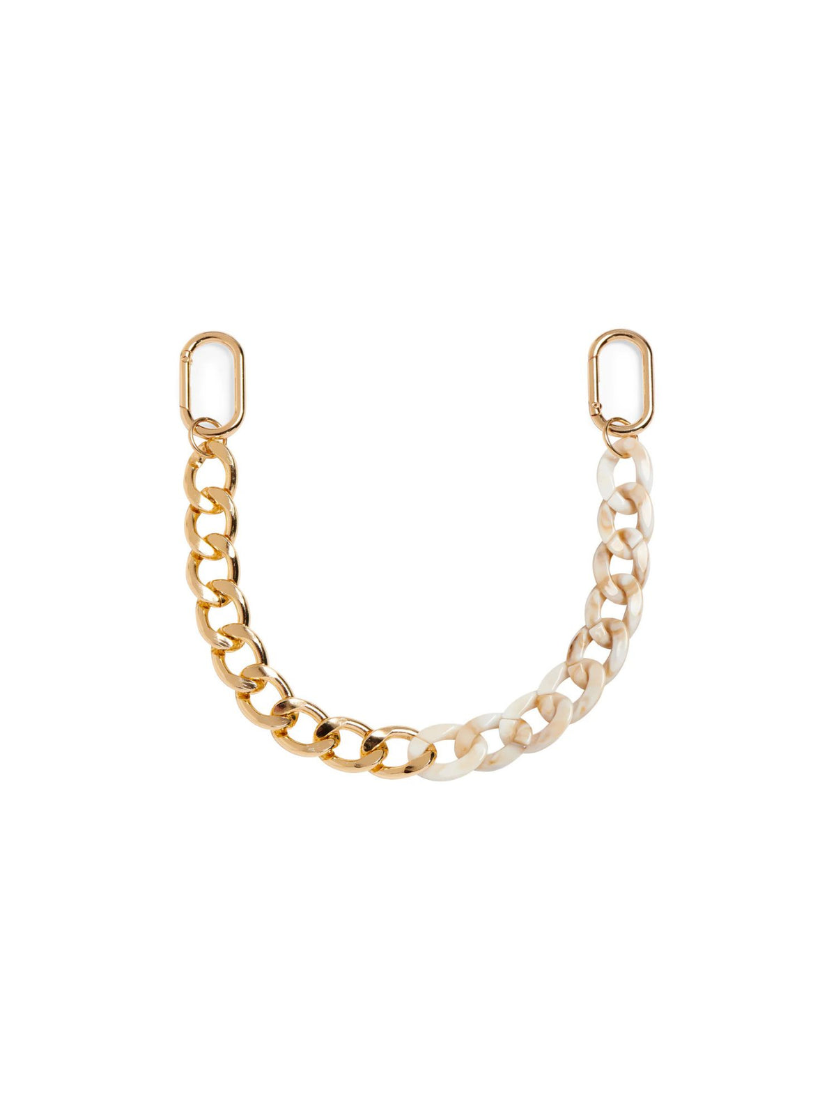 Transform your everyday bag into a style statement with the Chain Bag Charm. This eye-catching accessory combines chunky resin elements with gleaming gold-tone chain links for a modern, dimensional look. The secure clip attachment makes it effortless to switch between your favorite tote, crossbody, or keychain. Lightweight yet bold, it's the perfect way to elevate your accessories game with a touch of playful sophistication.
