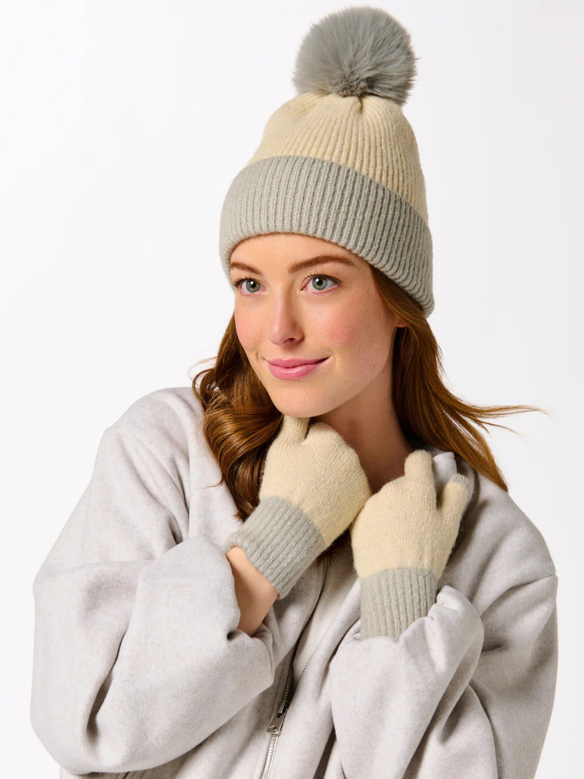 Top off your winter look with the Tinsley Hat—equal parts cozy and cute. Featuring a two-tone ribbed knit and a plush faux fur pom, this beanie adds a playful pop to your cold-weather wardrobe. The fold-over cuff keeps your ears toasty, while the soft fabric keeps things extra comfortable. Whether you're hitting the slopes or the sidewalk, this hat has you covered.