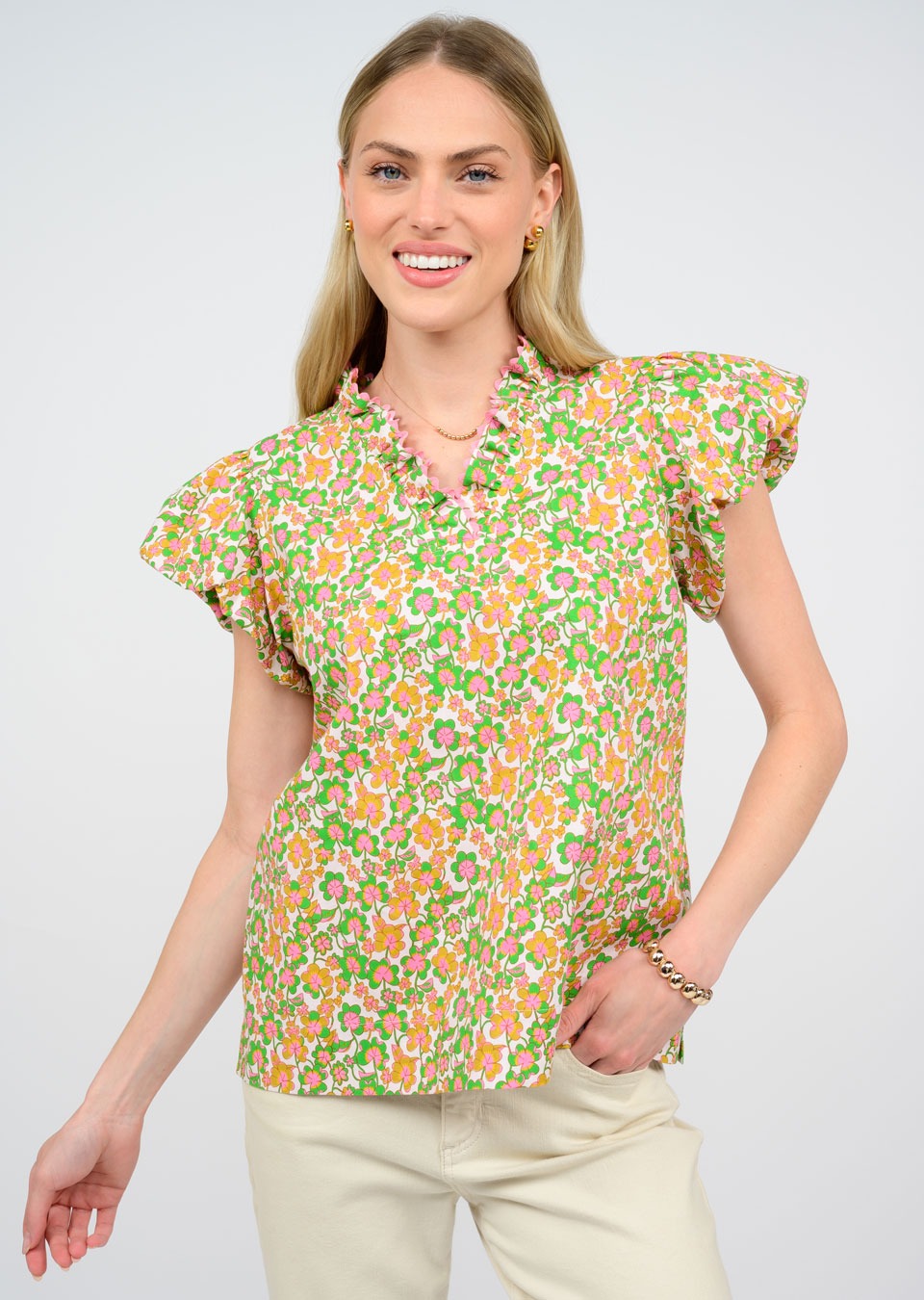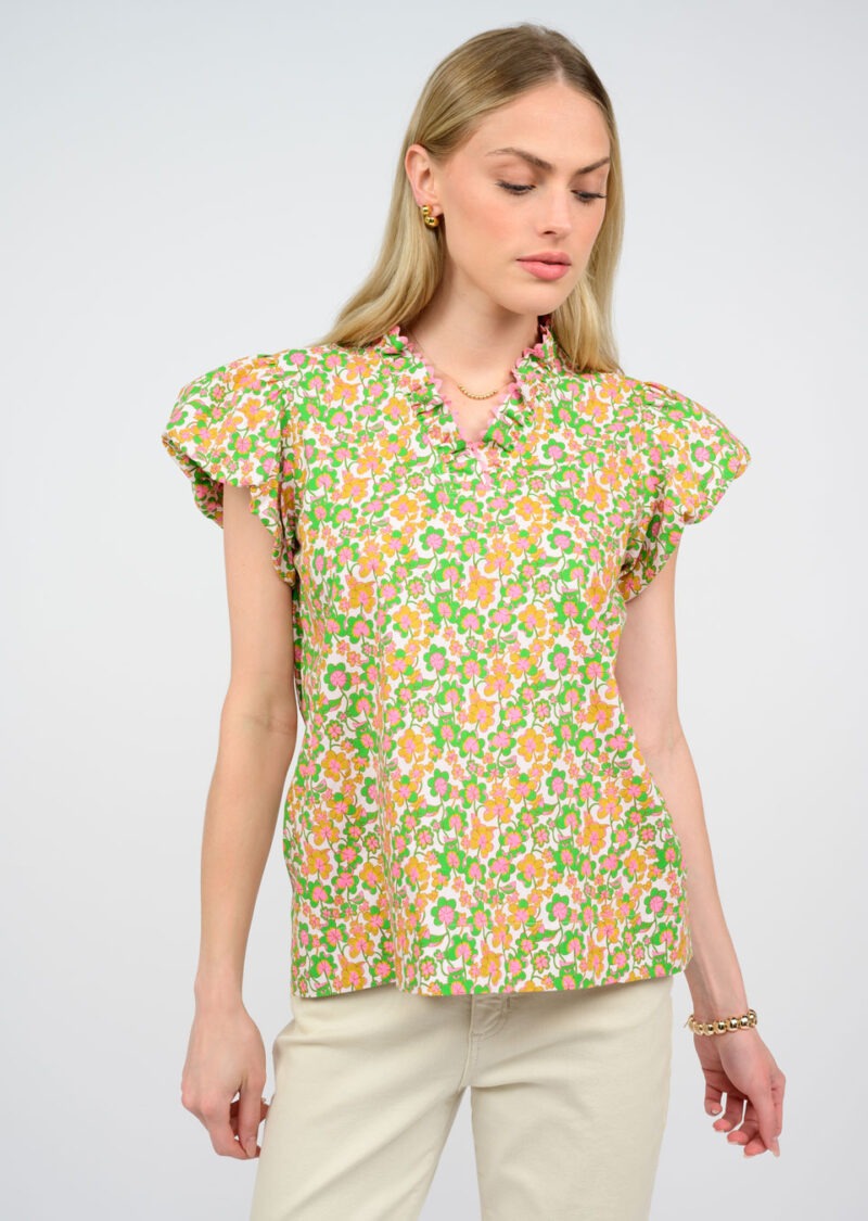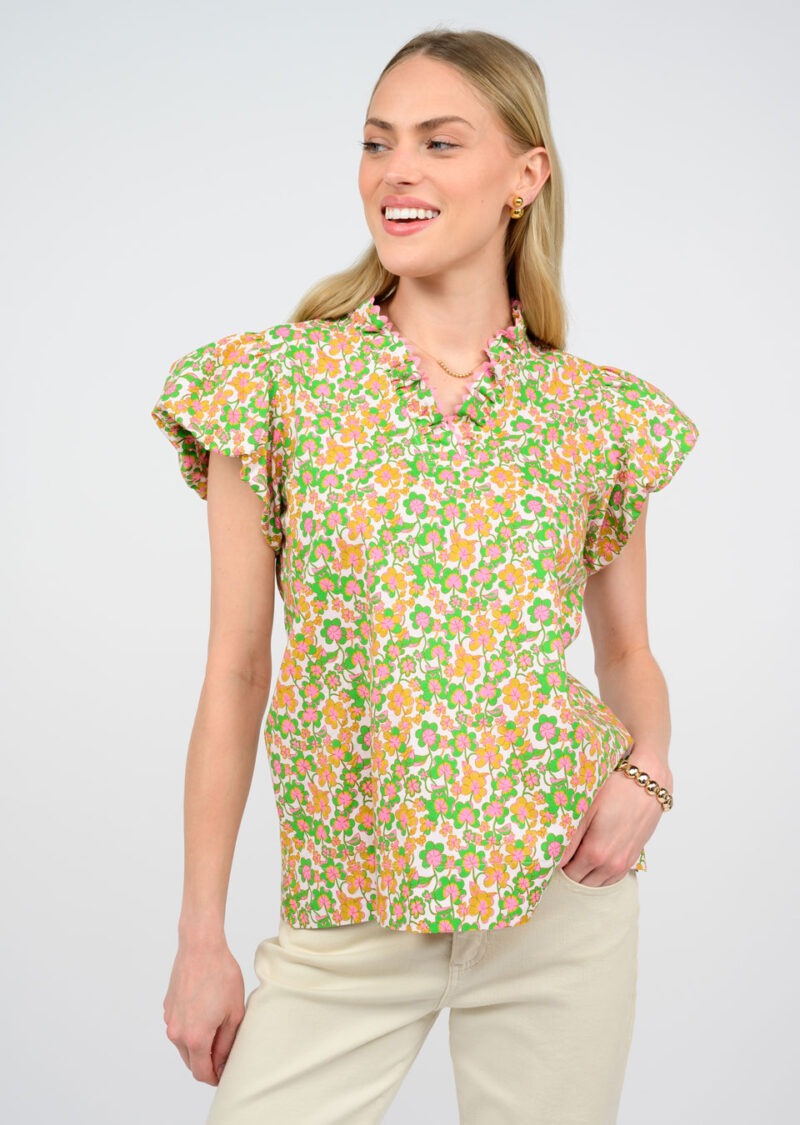 Add a touch of luck to your wardrobe with the Ivy Jane Clover Puff Sleeve Top. The playful all over clover print and vibrant pink and green colors will bring life to any outfit. Plus, the v-neck ruffle detail adds a touch of whimsy to this unique top.