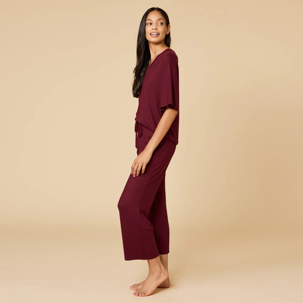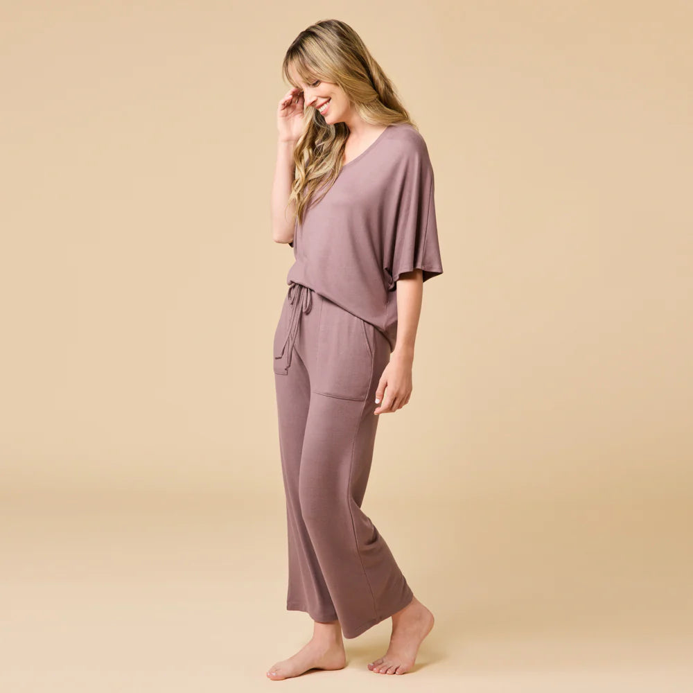 Indulge in luxurious lounging with the Softies Dream V-neck Capri 2-piece set. Made from buttery soft jersey fabric, this opulent set features a wide-leg cropped pant and v-neck top for effortless style. With convenient pockets and an elastic waistband, it's perfect for unwinding after work or on lazy weekends. Elevate your lounging routine with this chic and comfortable ensemble.