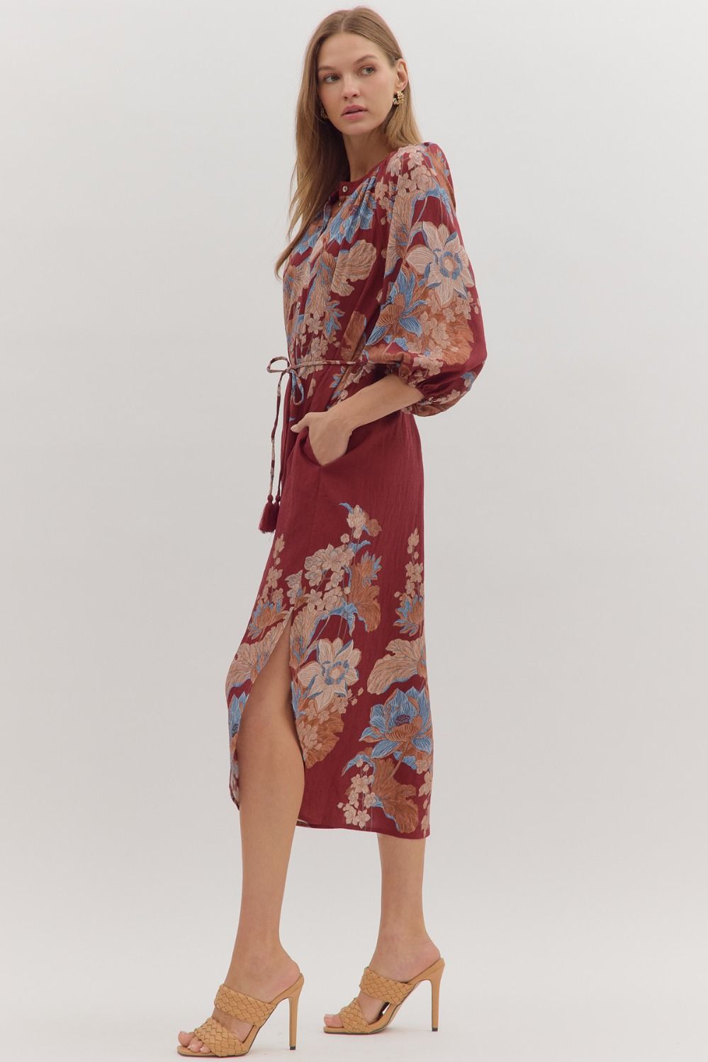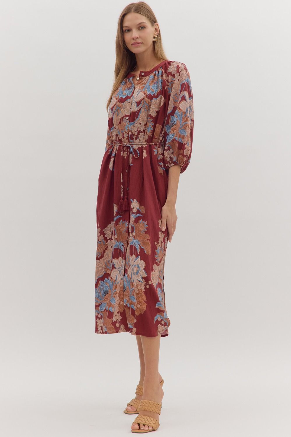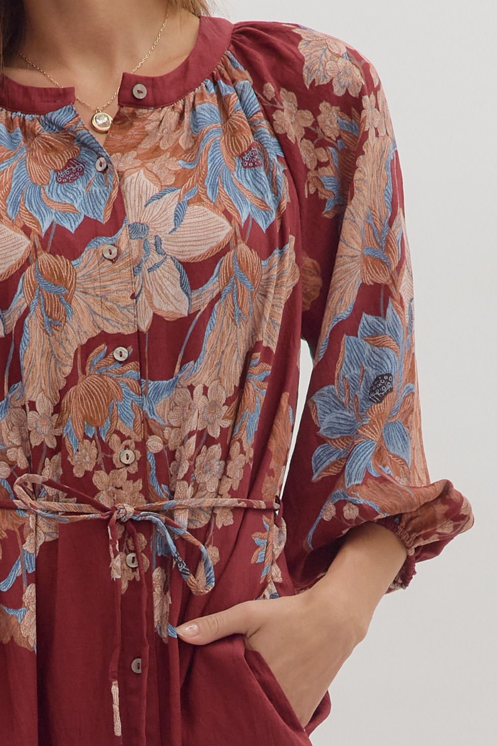 Romantic and effortless, the Wildflower Way Midi Dress is a timeless piece for the season. This floral print midi dress features long sleeves with elasticated openings, a button-front closure, and an adjustable drawstring waist for the perfect fit. Thoughtful details like side pockets and a full lining add both comfort and function. Soft, feminine, and easy to style, it’s the ideal dress for everything from brunch dates to fall festivities.