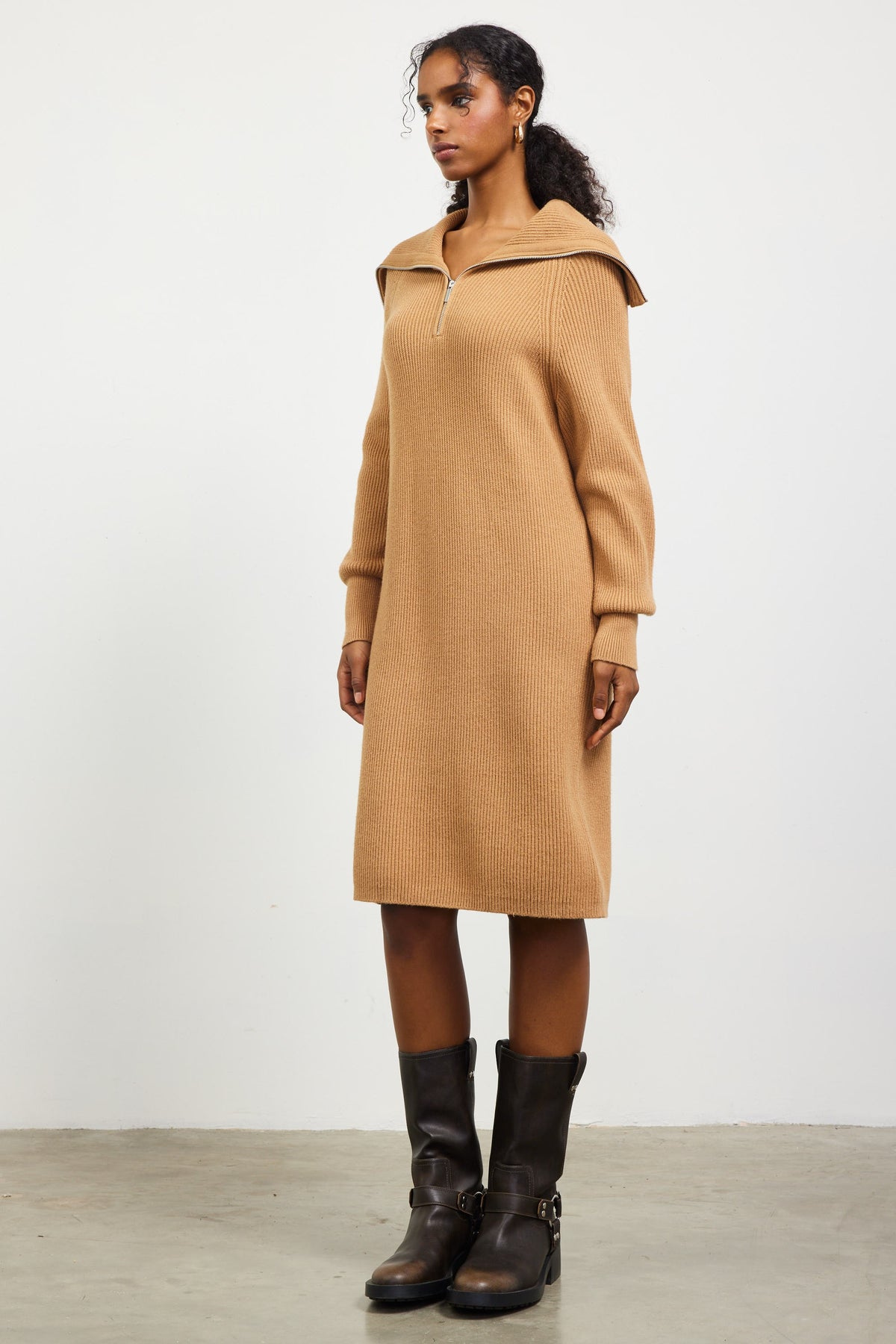 Meet your new go-to piece! This zip-up mock neck sweater dress strikes the perfect balance between cozy and cool. The sleek neckline adds a sporty edge, while the soft knit fabric hugs you in all the right ways—keeping you toasty without the bulk. Throw it on with ankle boots for an effortlessly polished vibe, or pair it with sneakers when you're feeling more laid-back. Either way, you've got a dress that works as hard as you do, taking you from casual coffee runs to weekend hangouts with zero fuss.