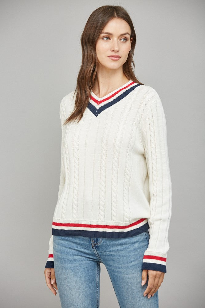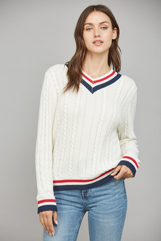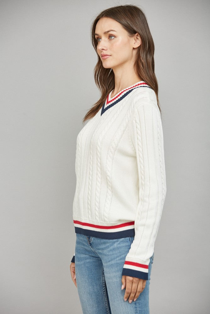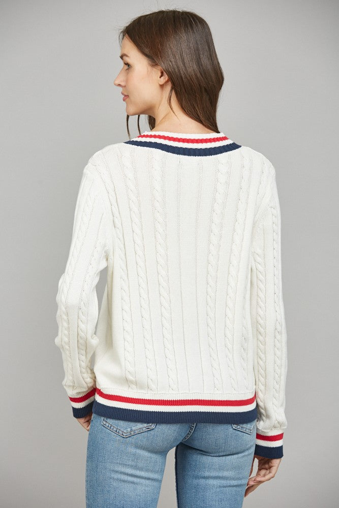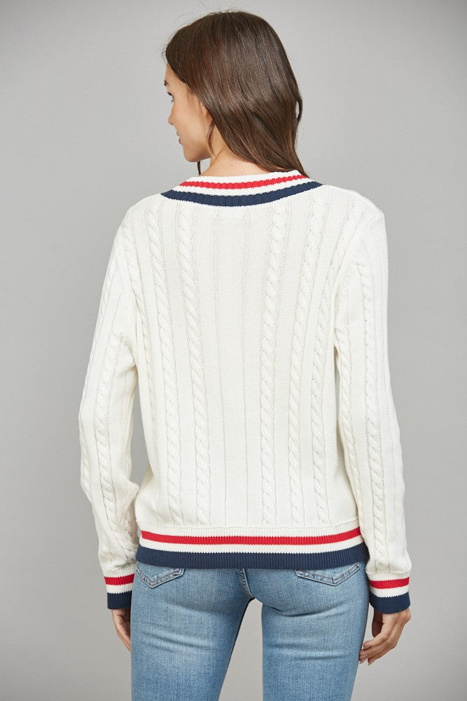 Cable Knit Varsity Sweater