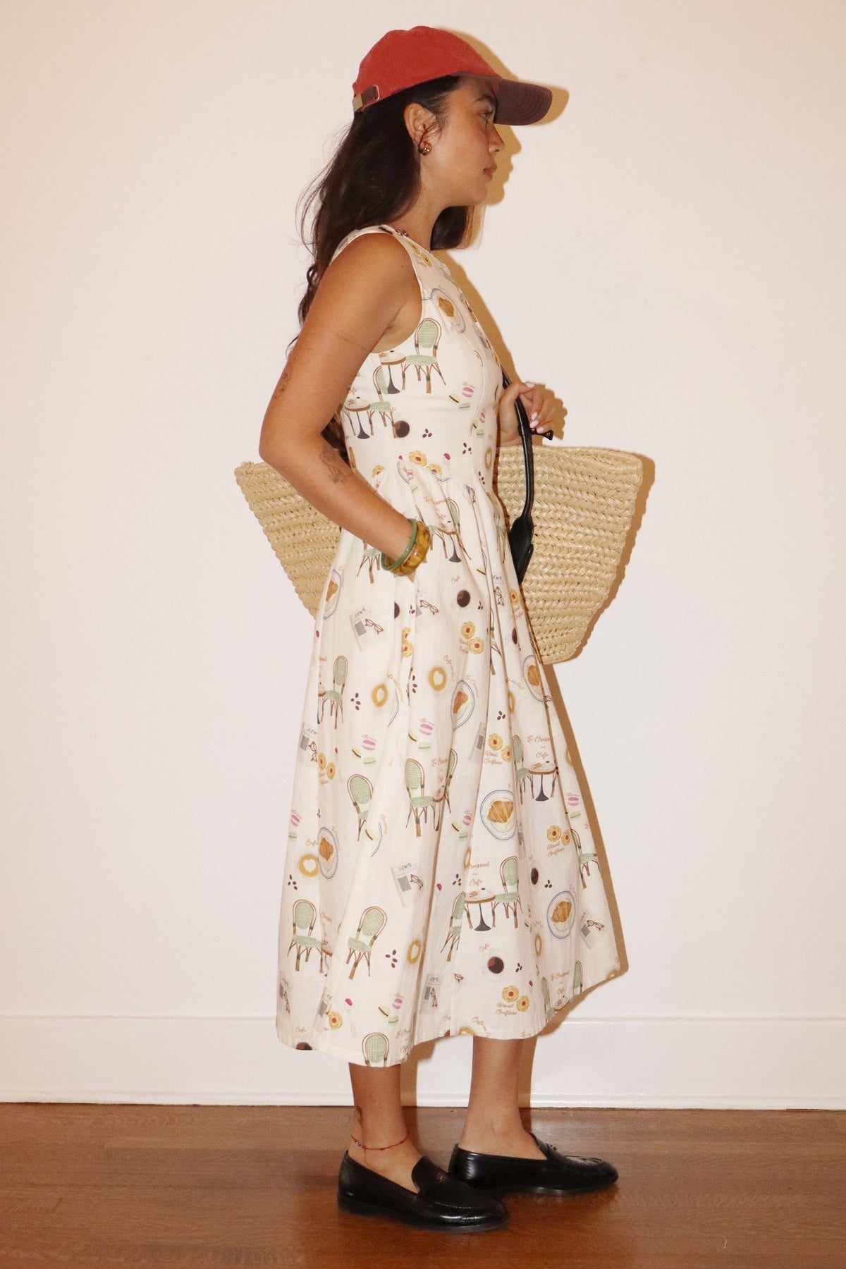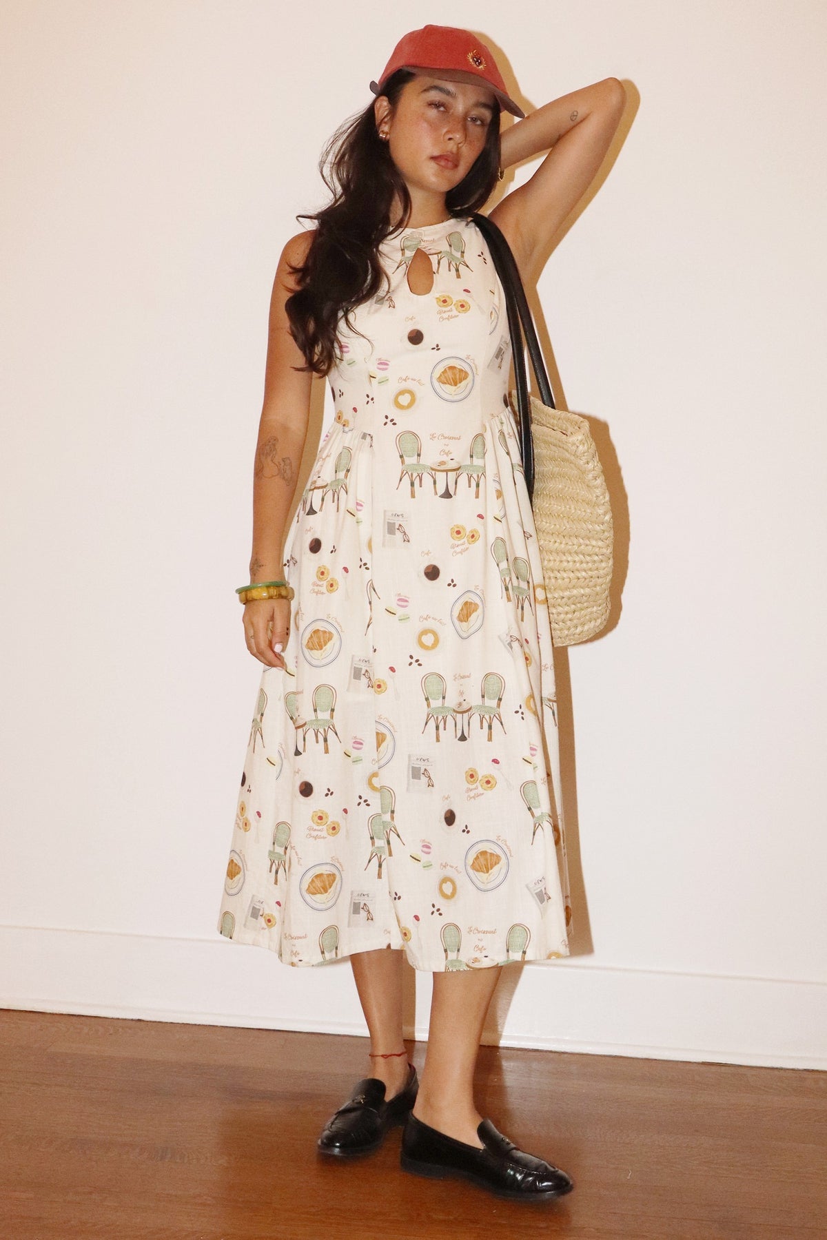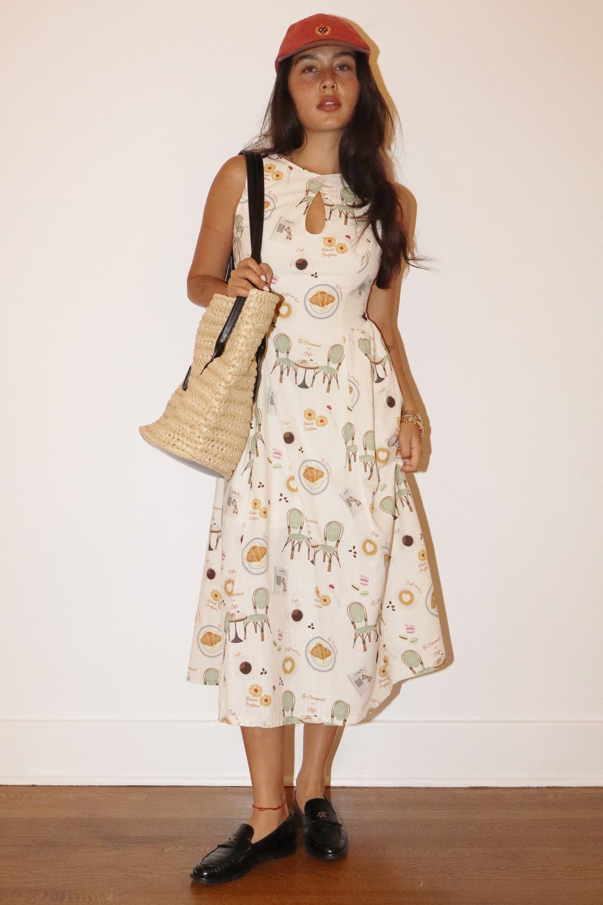 Effortlessly charming with thoughtful details, the Cafe Midi Dress is made for slow mornings and stylish afternoons. Featuring a playful café-inspired print, this sleeveless midi silhouette is designed with a subtle keyhole detail at the front for a hint of intrigue, while practical side pockets add everyday ease. The flattering midi length makes it perfect for everything from brunch dates to casual evenings out. Polished yet relaxed, this dress is an easy one-and-done look you’ll reach for again and again.