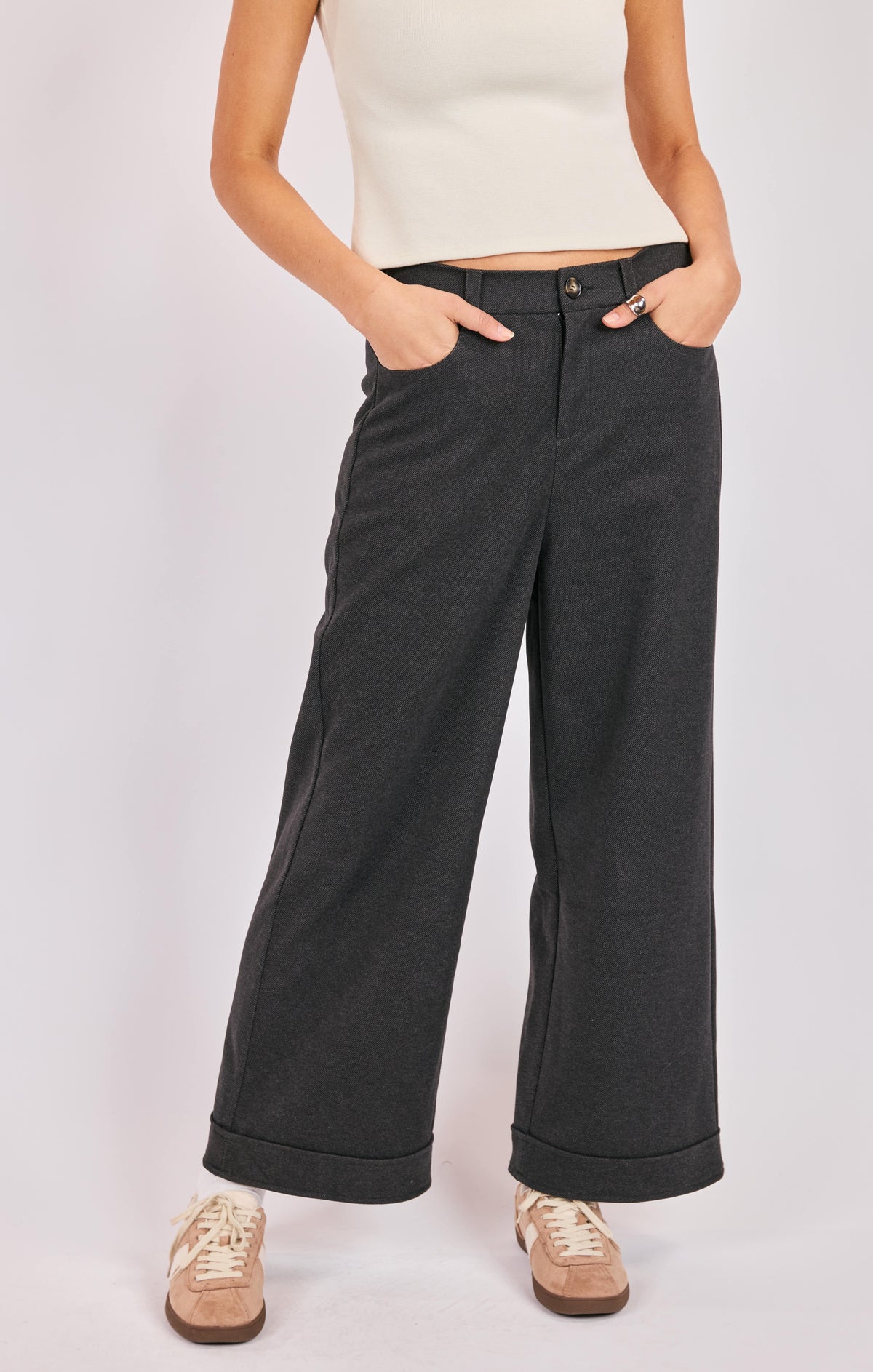 Effortlessly cool and endlessly versatile — the Concrete Dusk Pants are your new go-to for elevated comfort. Designed with a soft, structured knit and a relaxed wide-leg silhouette, these charcoal pants strike the perfect balance between casual and chic. Featuring a mid-rise waist, front button closure, and cuffed hem for a tailored finish, they’re ideal for looking put-together.