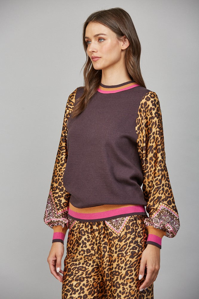 Stay cozy while showing your wild side. Our Autumn Wild Contrast Sleeve Top features a classic crew neckline paired with bold animal-print sleeves for an eye-catching fall twist. The soft knit body keeps you warm and comfortable, while the printed sleeves add the perfect pop of personality. Easy to style with jeans, leggings, or your favorite fall layers—this top is made for crisp-weather strolls and everything in between.