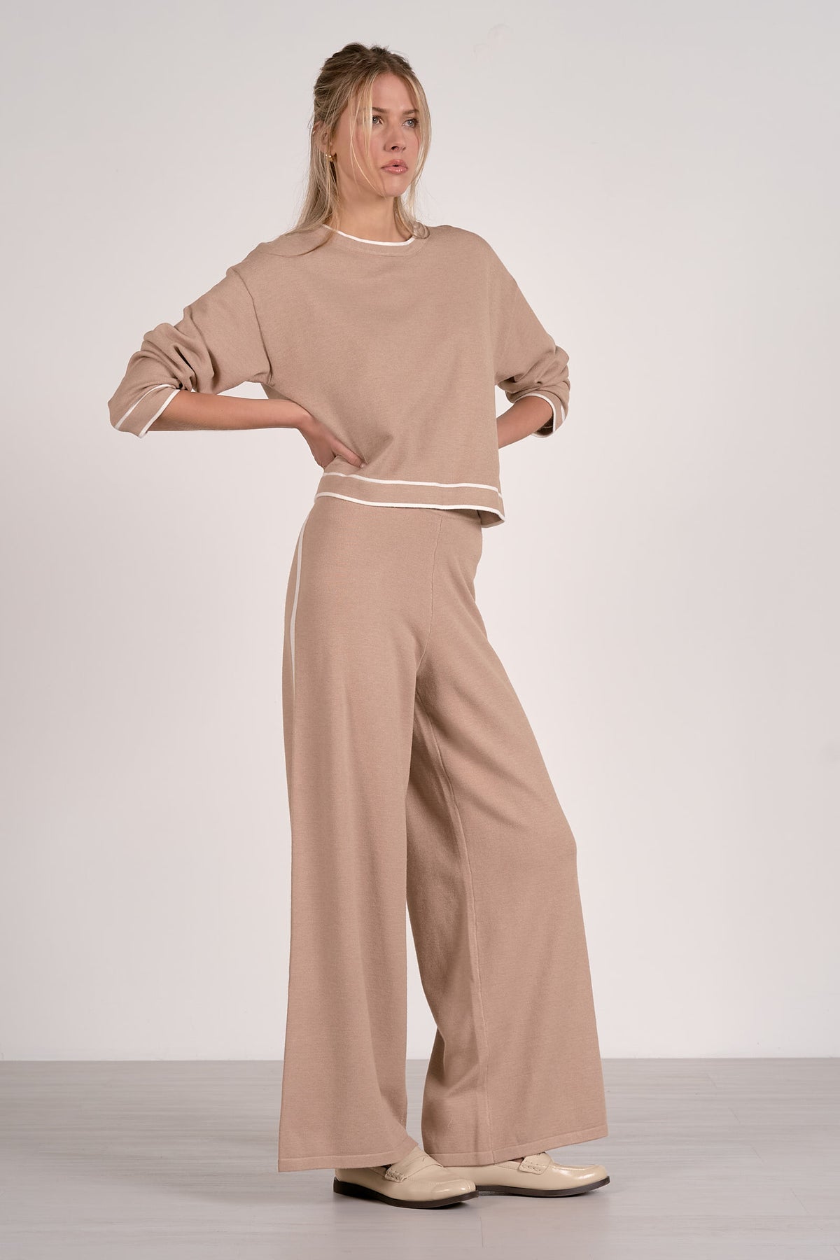 Wrap yourself in effortless style with this dreamy crew sweater that's basically a hug you never want to take off. The ultra-soft fabric and relaxed fit make it perfect for lazy mornings or casual hangouts, while crisp white contrast stripes at the cuff, hem, and neckline add just enough polish to elevate your everyday look. Long sleeves, drop shoulders, and that cozy crew neckline? Pure comfort goals. This is the sweater that does it all—no compromises needed.