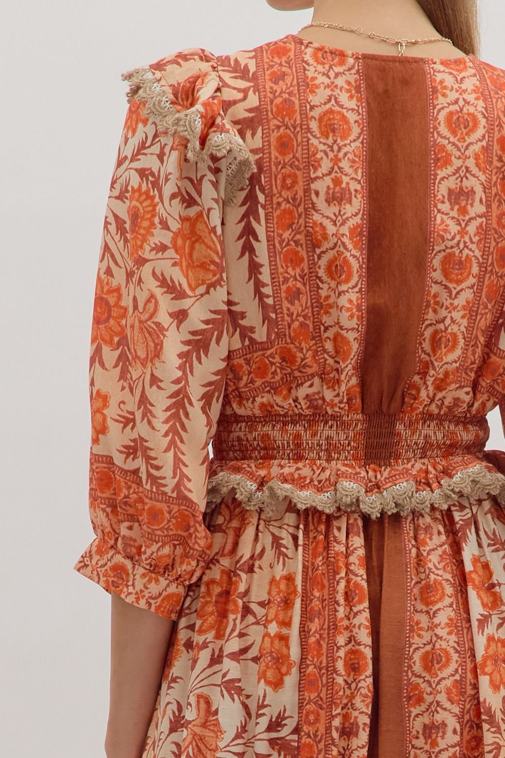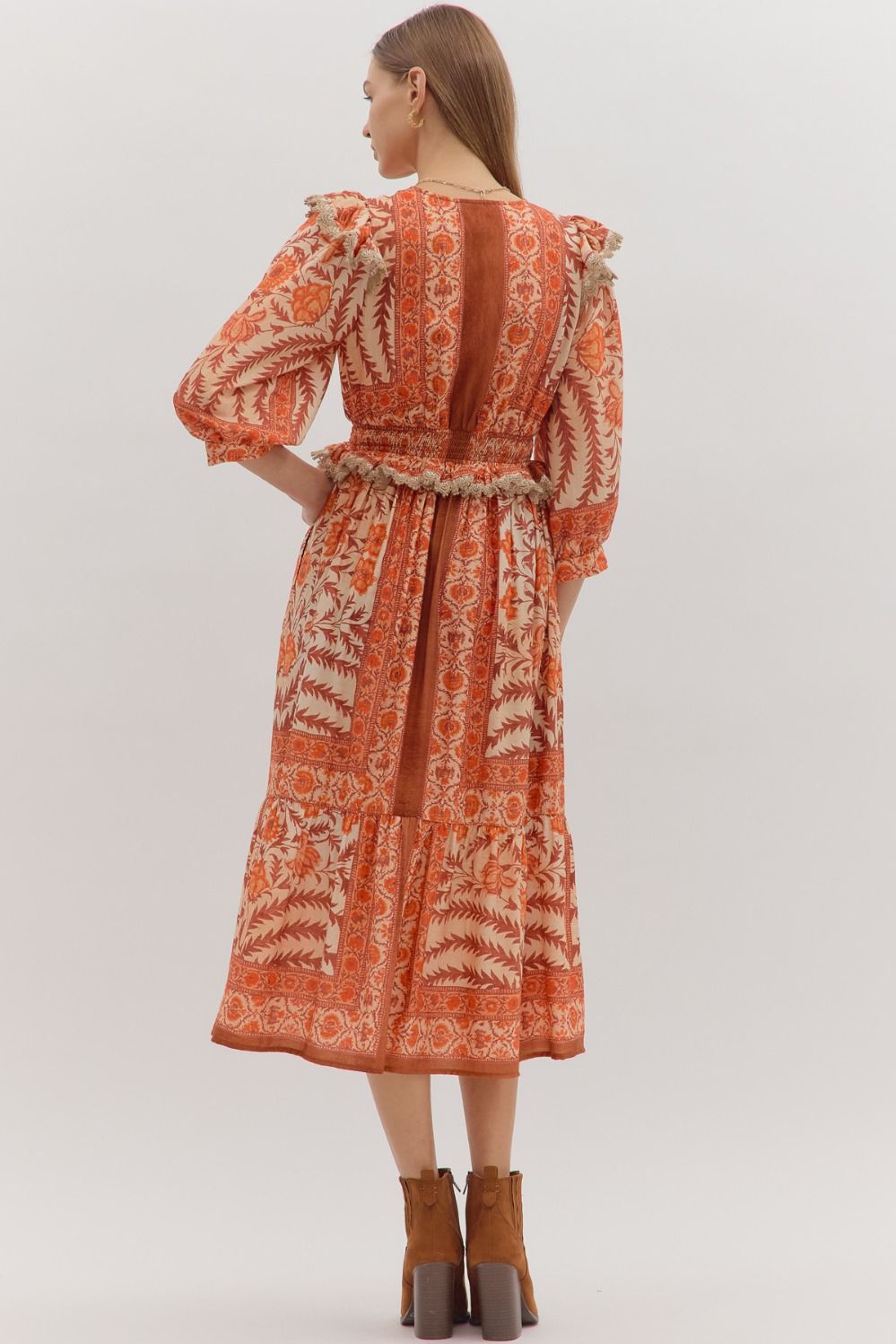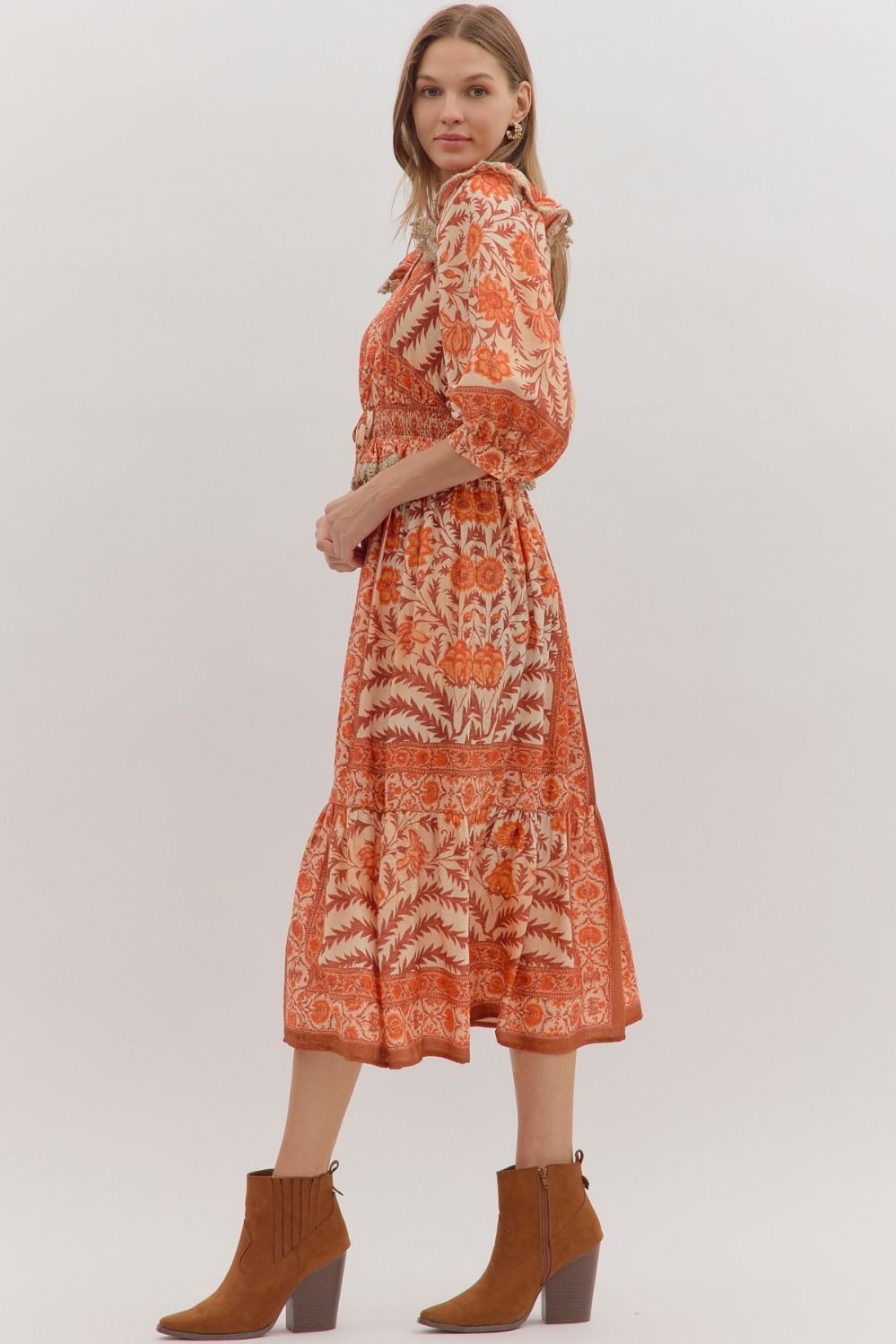 Autumn Petals Ruffle Midi Dress