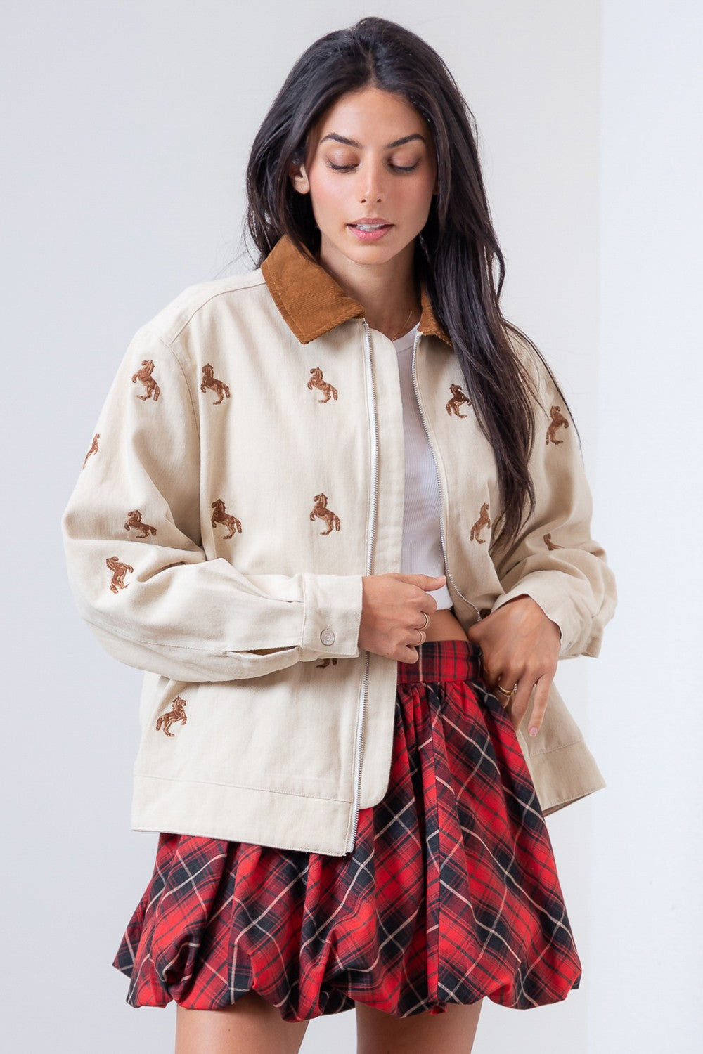 Horse Embroidered Zip Jacket