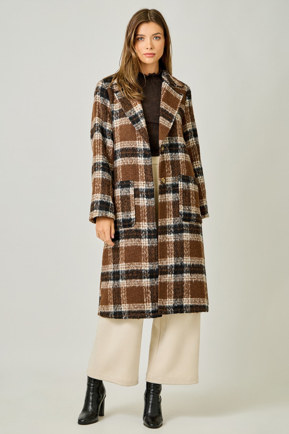 Elevate your fall wardrobe with the Autumnwood Plaid Midi Coat. Featuring a classic double-button closure, long sleeves, and a flattering midi length, this coat combines timeless style with practical warmth. Front bottom pockets add functionality, while the plaid pattern brings a cozy, seasonal touch—perfect for layering over dresses, skirts, or your favorite denim on crisp autumn days.