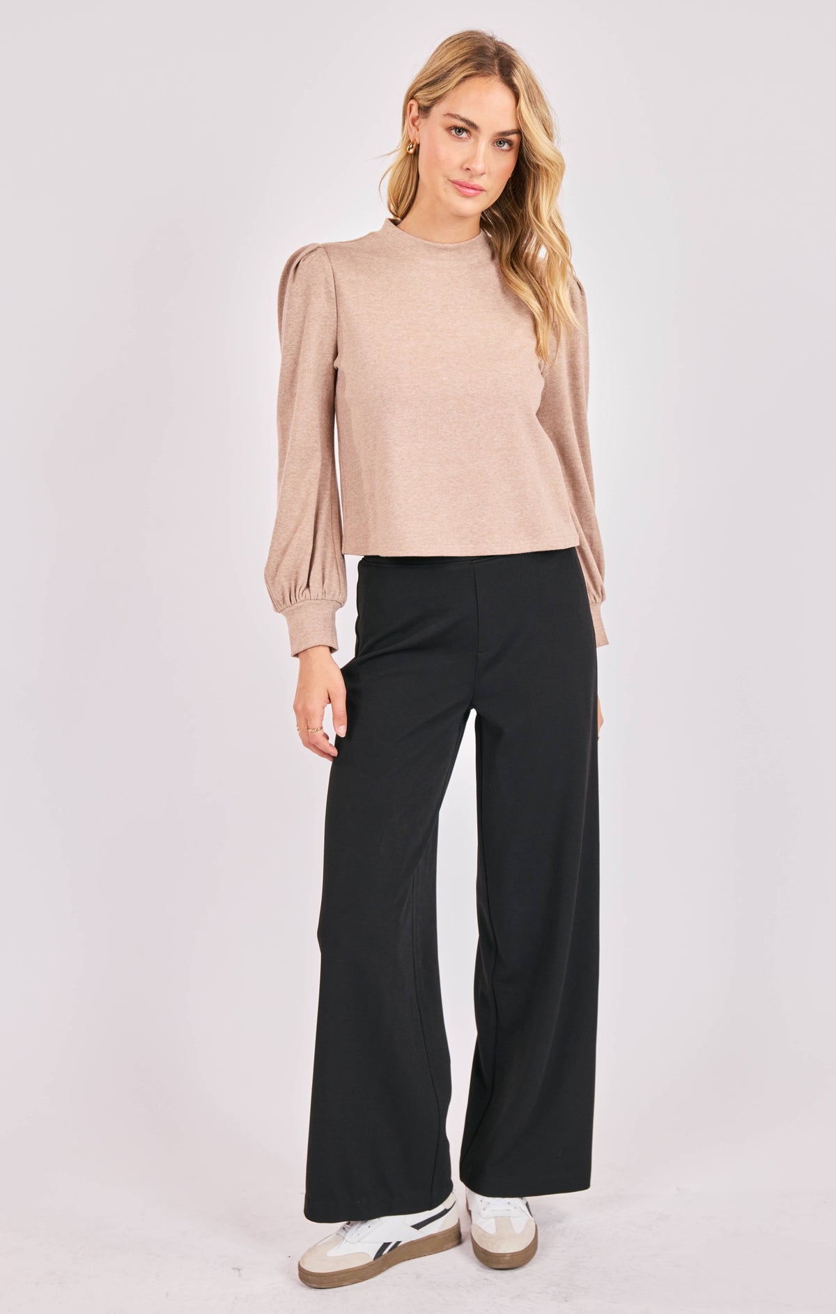 Elevate your everyday style with the Rhapsody Balloon Sleeve Top, where dramatic flair meets cozy comfort. The playful mock neck and voluminous balloon sleeves create an instantly eye-catching silhouette that demands attention. Pair it with the matching pants to nail a coordinated look that's equal parts fashion-forward and effortlessly chic. Perfect for anyone ready to make a statement without trying too hard.