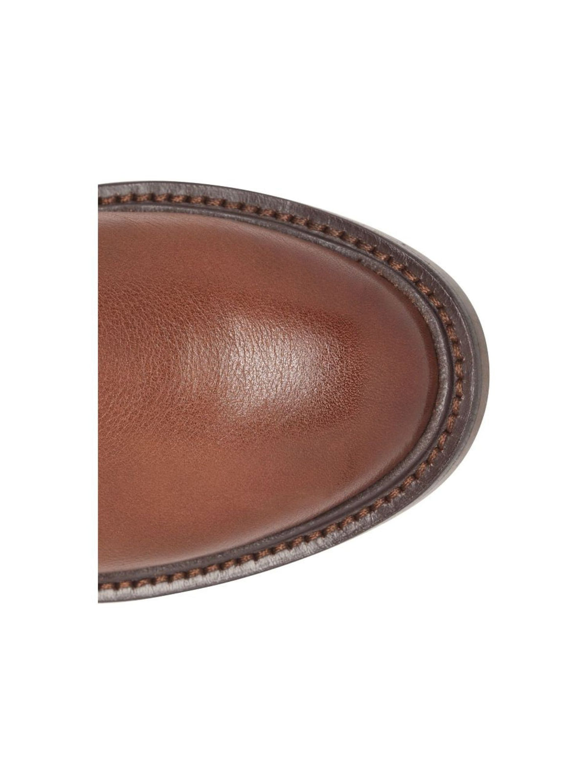 - Leather-lined footbed, cushioned at ball and heel, with arch support