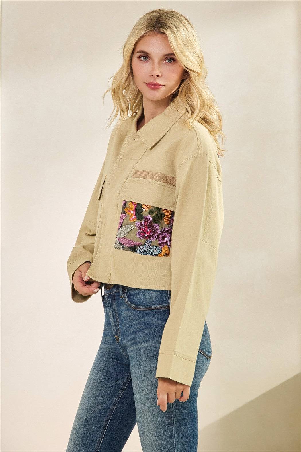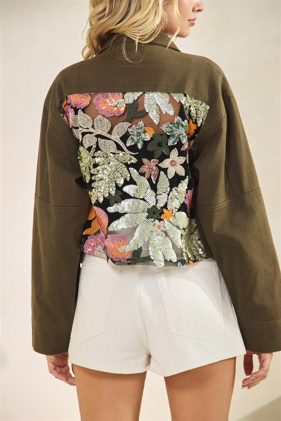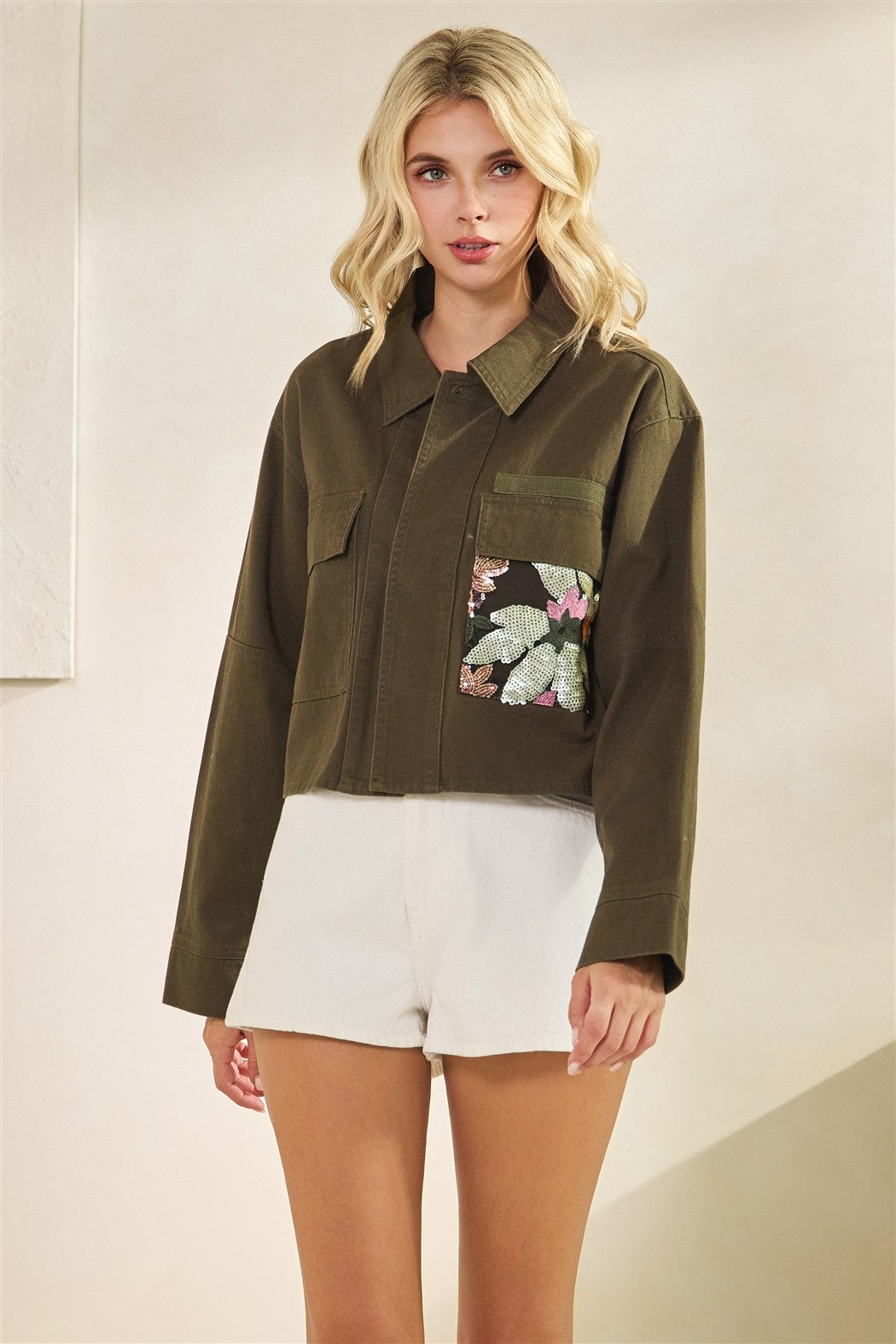 Add instant glam to any look with the Spark Sequin Mesh Pocket Jacket. This statement layer features shimmering sequin detailing throughout, sheer mesh panels for a modern touch, and a functional front pocket that balance style with practicality. The relaxed fit and open front make it easy to throw on over a cami or party dress—perfect for elevating your holiday or night-out wardrobe.