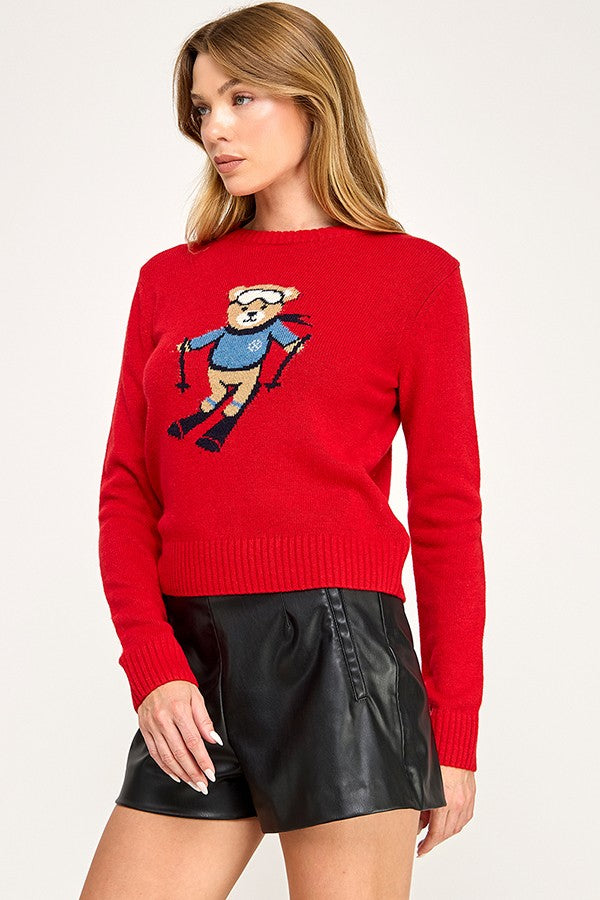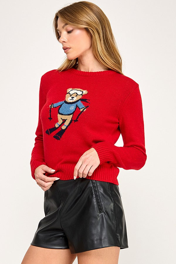 Hit the slopes in style with this cozy Skiing Bear Holiday Sweater! Featuring an adorable teddy bear skiing across the front, this cheerful red crew neck brings instant holiday charm to your winter wardrobe. Designed with long sleeves and a classic fit, it’s the perfect mix of festive and comfortable—ideal for casual days, holiday gatherings, or sipping cocoa by the fire.