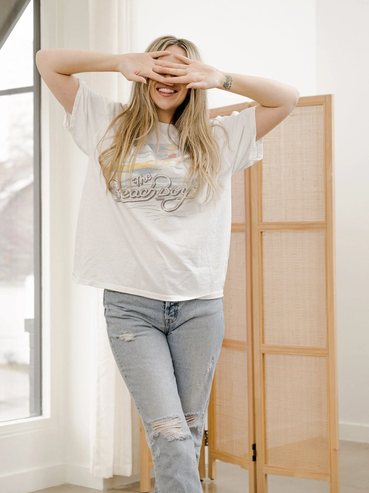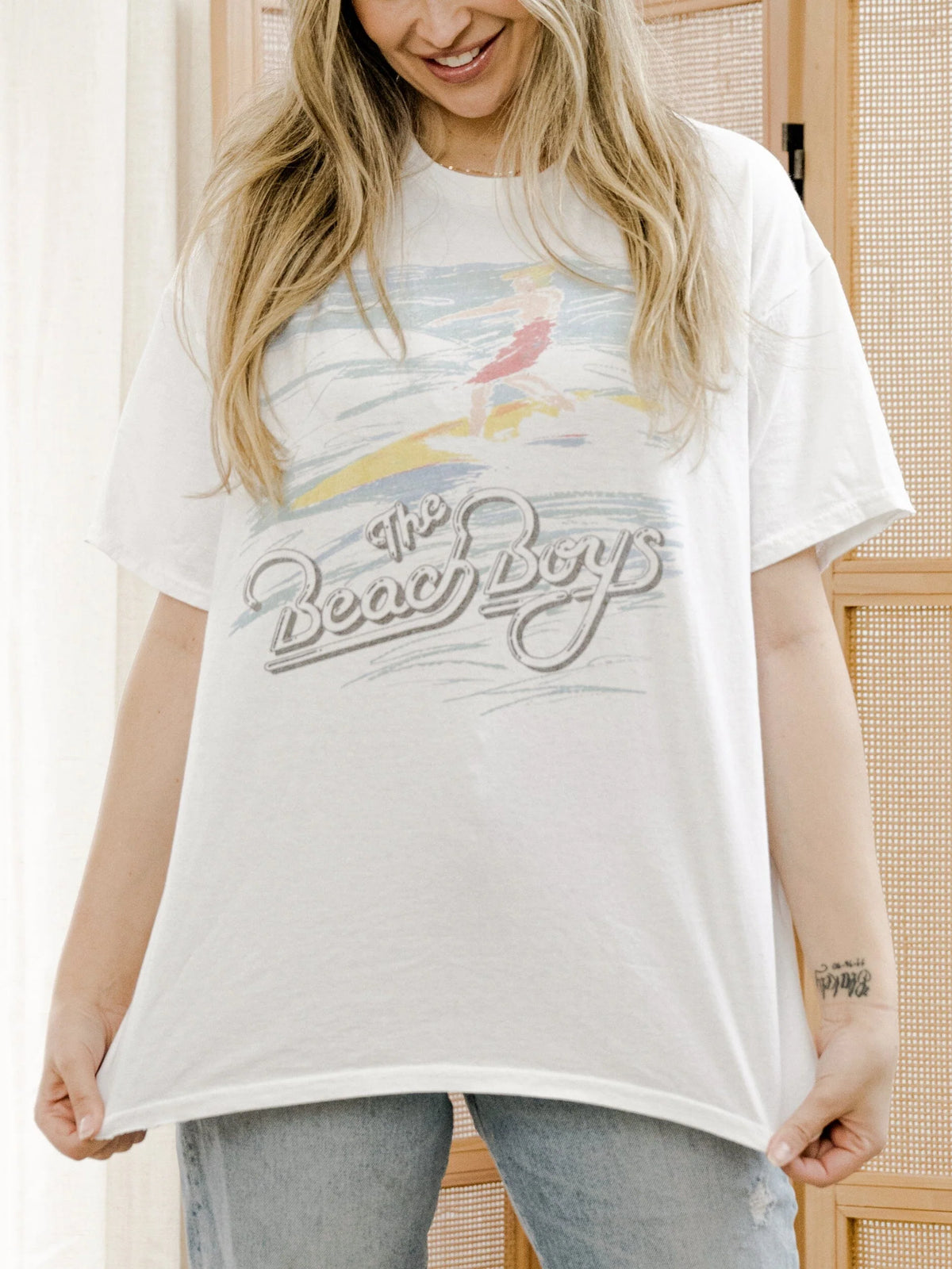 Ride the waves of style with LivyLu's Beach Boys 80s Surf Tee! Show off your love for retro music and beach vibes with this fun t-shirt. Perfect for a day by the shore or a fun night out, this tee is sure to make a splash.