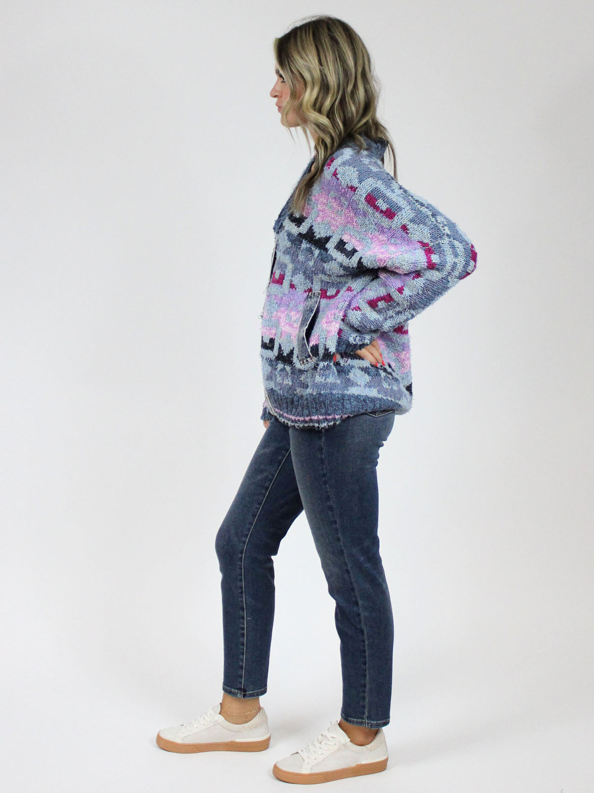 Get ready to brighten up your layered looks with the Free People Bluebell Cardigan! This slouchy, relaxed fit cardi features a soft fabrication with colorful detailing, a deep V-neckline, and denim trim. With button-front closures and drop-shoulder sleeves with ribbed knit cuffs, this unique piece is perfect for adding some eye-catching style to your wardrobe.