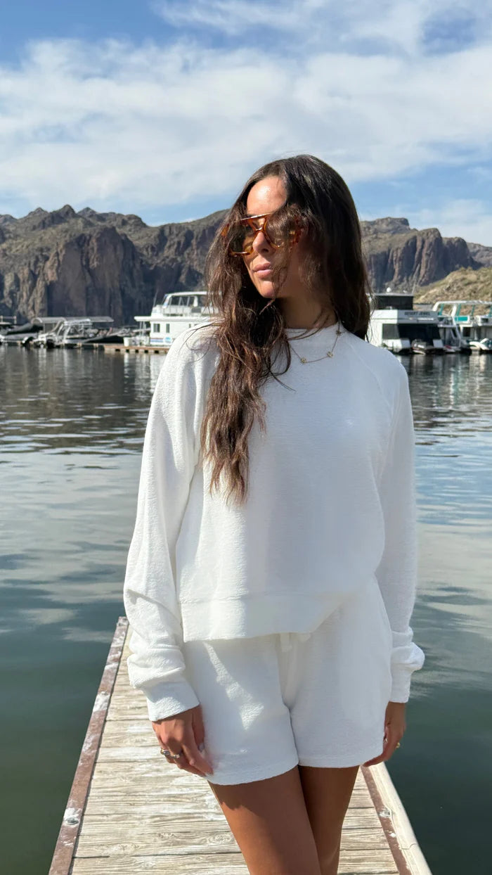 Embrace comfort all day long with the Happy Camp3r White Cloud Shorts. Crafted from irresistibly soft fabric, these lightweight and breathable shorts keep you feeling fresh and cozy whether you're lounging or on the move. Their relaxed fit makes them perfect for layering or wearing solo in effortless style.