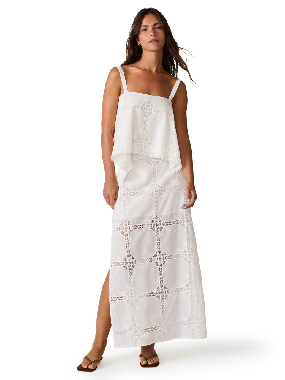 The Steve Madden Ainslee Eyelet Cami Top combines vintage-inspired details with modern comfort. Made from 100% cotton and fully lined, this sleeveless tank features delicate antique eyelet embroidery and a flattering sharkbite hem that moves beautifully with you. Breathable and versatile, it's perfect worn solo with your favorite denim or layered under jackets for transitional style. Pair it with the Monique Skirt to create an effortlessly coordinated summer ensemble that feels both polished and relaxed.