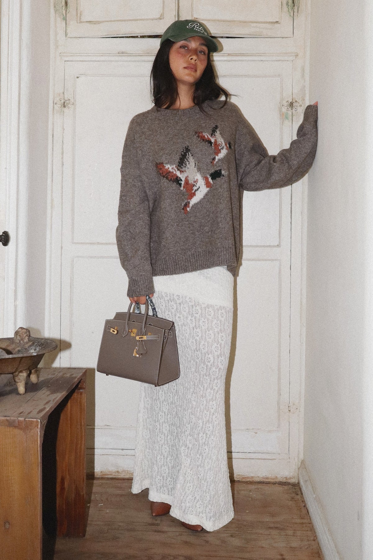 Embrace your quirky side with this charming Flying Duck Knit Sweater. Featuring an adorable duck print across the chest, this cozy long-sleeve design brings whimsy to your everyday wardrobe. Crafted from soft knitted fabric, it's perfect for layering on cool days or wearing solo for a statement look. Whether you're a waterfowl enthusiast or simply love playful patterns, this sweater delivers comfort with personality. A delightful addition to any casual collection.
