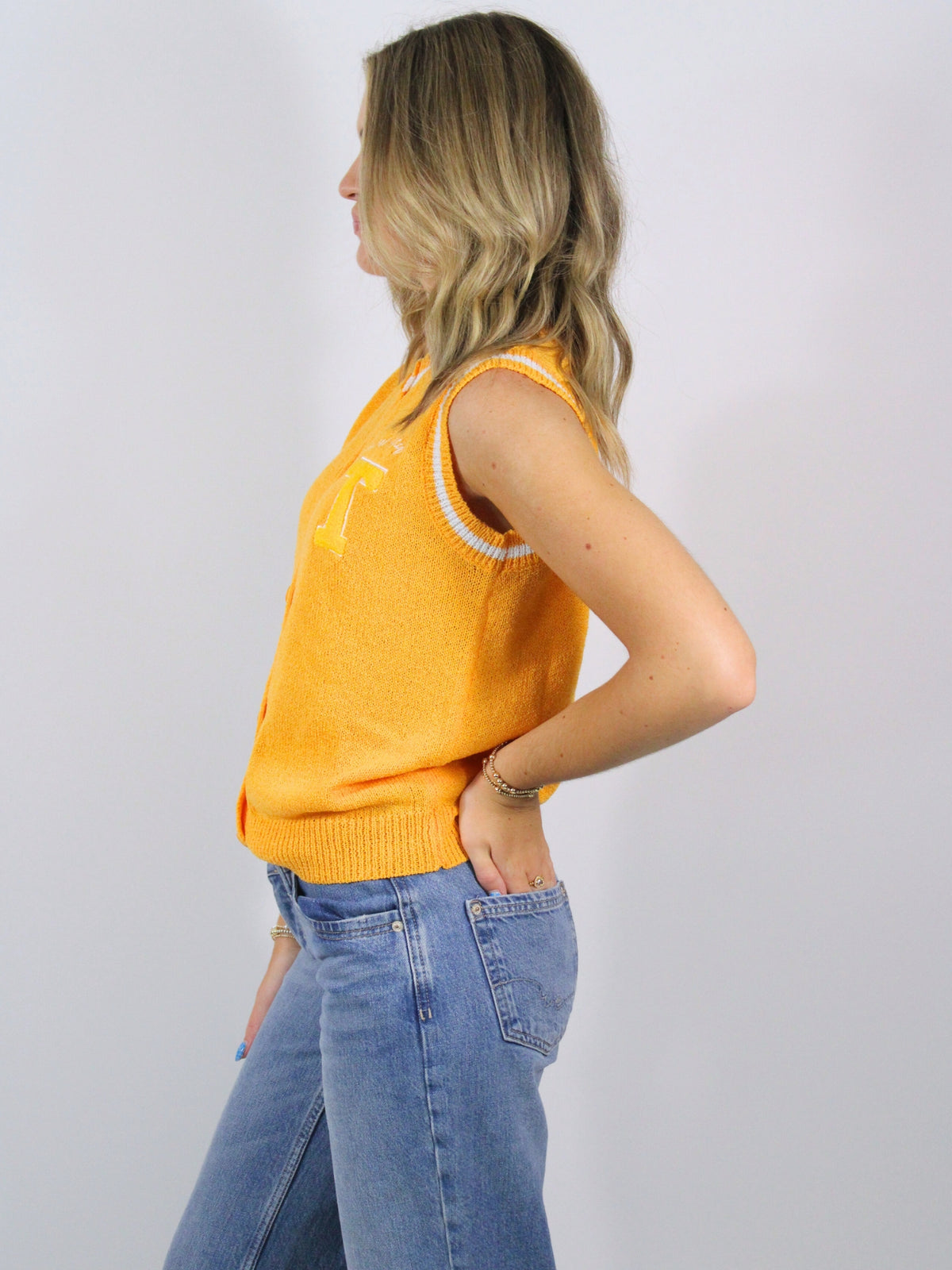Cheer on the Vols in style with the Gameday Fuzzy Patch Vest! Featuring Tennessee orange, this cozy vest showcases fuzzy patches with a bold Power T and football details on the front. Perfect for staying warm while showing off your team spirit on game day or any day!