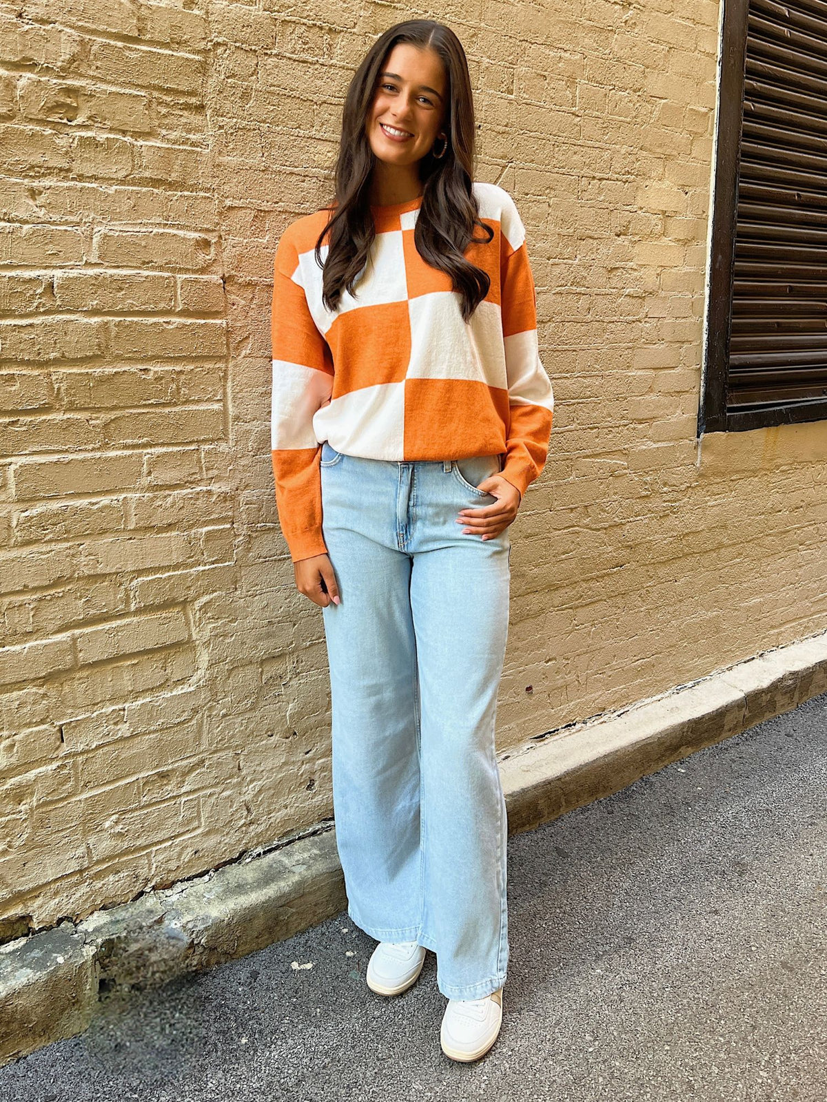 Embrace cozy vibes with the Tailgate Checkerboard Sweater, your go-to for casual fun and spirited game day style. This lightweight pullover features a relaxed fit and soft knit fabric, making it perfect for layering no matter the season. Its classic crew neck and banded hem keep things timeless, while the bold checkerboard pattern adds playful energy. Show off your Vols pride in a sweater that’s as comfortable as it is eye-catching—ideal paired with jeans, leggings, or your favorite mini skirt for a tailgate-ready look!