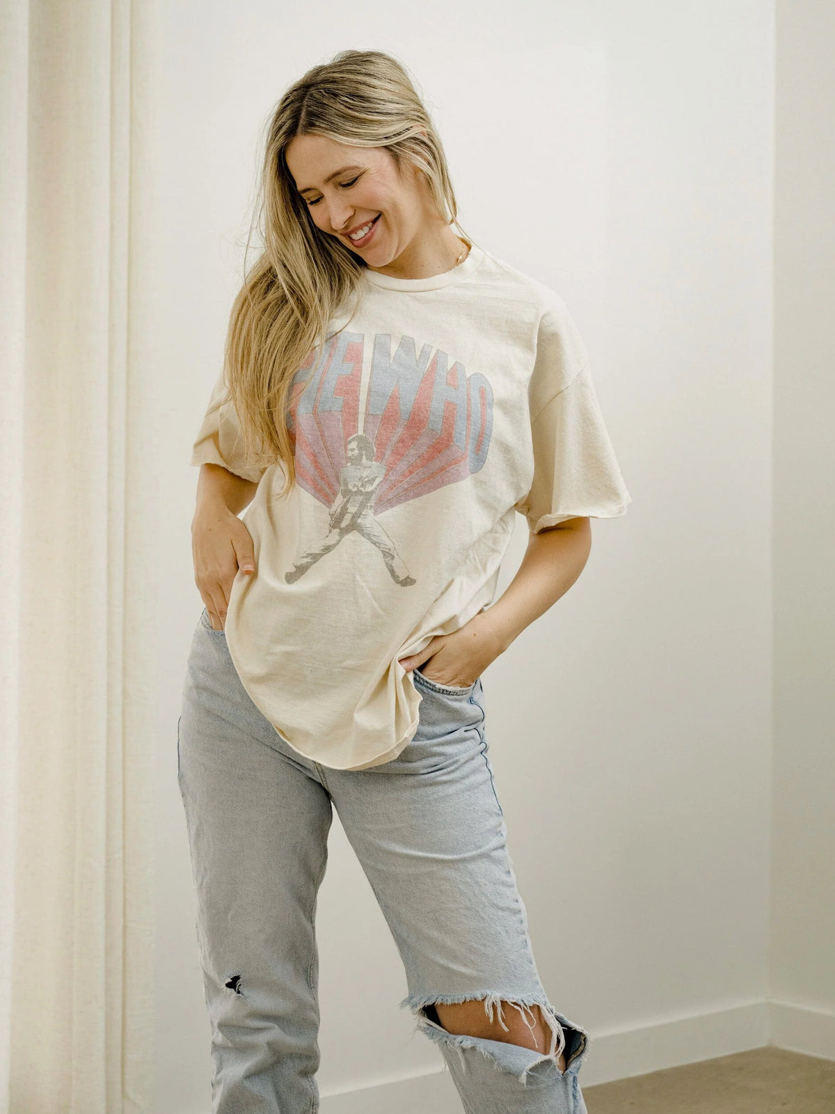 LivyLu 100% Preshrunk Cotton thrifted tees are meaningfully distressed and officially licensed. Each piece is one of a kind, and colors/distressing may vary from shirt to shirt. Pairs well with vintage denim and your favorite kicks.
