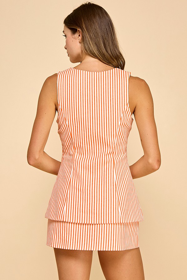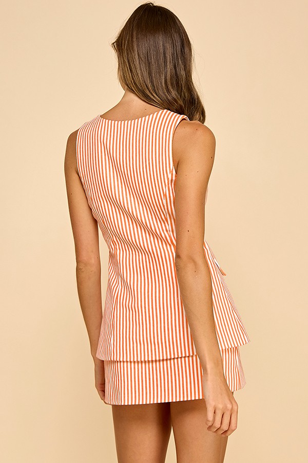 Cheer on the Vols in effortless style with the Game Day Striped Spirit Romper. Designed with a round neckline, sleeveless cut, and bold orange-and-white stripes, this romper is a true gameday standout. The front button closure, hidden side zipper, and stretchy cotton fabric ensure both comfort and a flattering fit. Perfect for tailgates, stadium seats, or post-game celebrations, it’s the ultimate blend of spirited charm and casual chic.