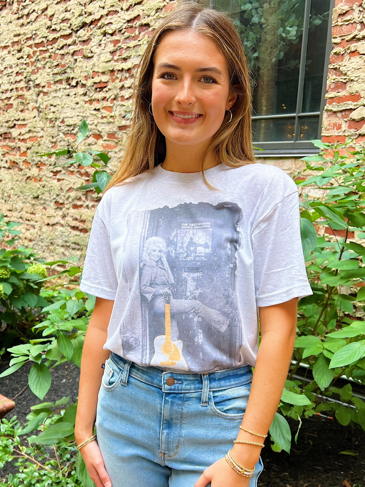 Rock out in style with this Dolly Tennessee Guitar Tee! Featuring Dolly Parton and the University of Tennessee with a distressed black and white design, this shirt is perfect for game day or any day you want to show off your love for music and the volunteer state.
