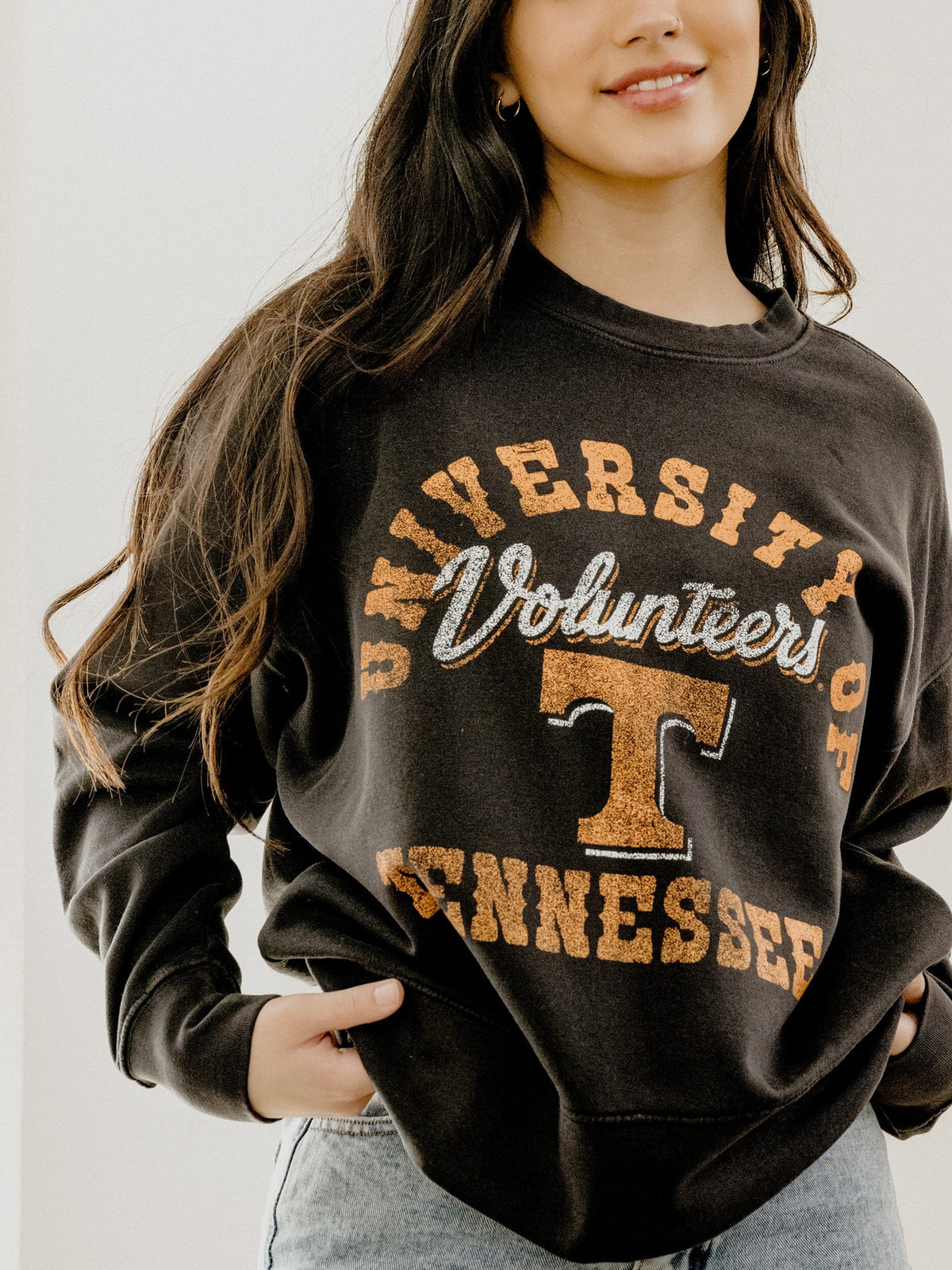 Show off your Volunteer pride in ultimate comfort with the LivyLu Vols Draft Charcoal Hi-Dive Oversized Crew Sweatshirt. This vintage-inspired charcoal crew features bold “University of Tennessee Volunteers” graphics with a distressed orange Power T for a true gameday vibe. Designed with an oversized fit and soft, cozy fabric, it’s perfect for layering on cool game nights or lounging in style.