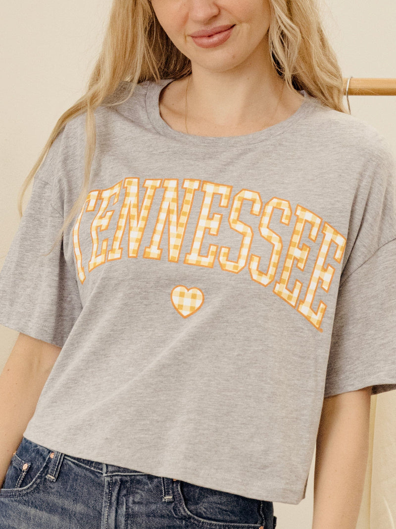 LivyLu Tennessee Vols Gingham Heart Crop Tee