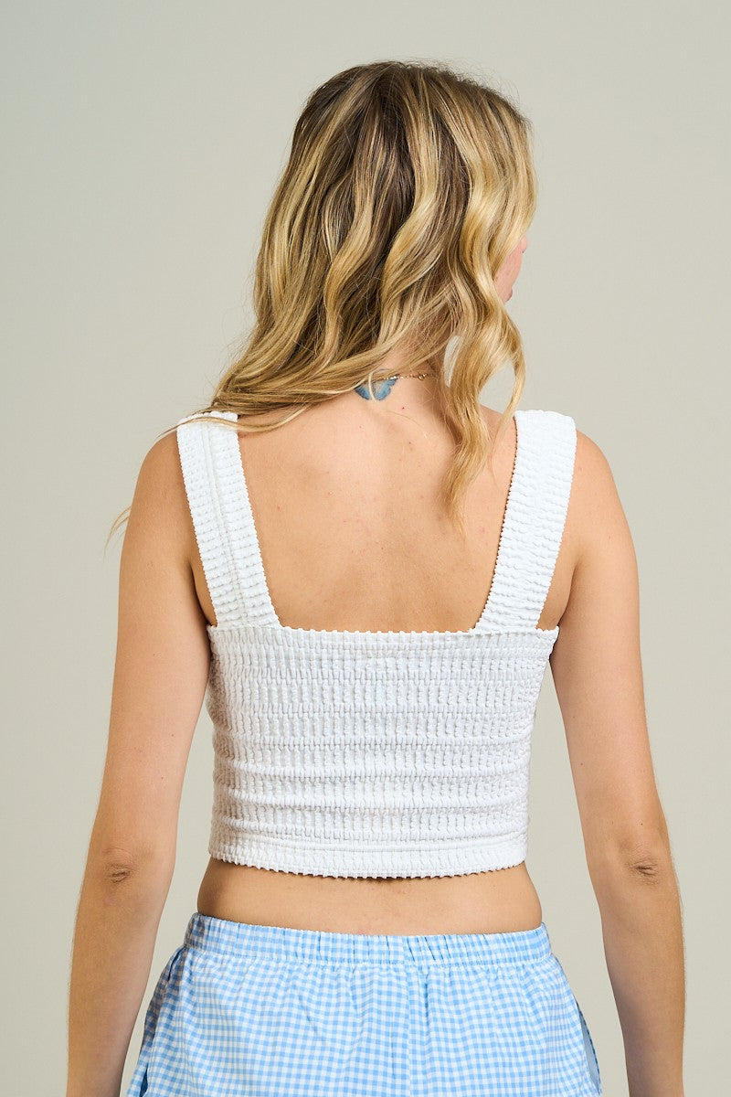 Stay fresh and flirty with the Smocked Square Neck Tank Top. Its stretchy smocked fabric hugs your curves comfortably, while wide straps and a square neckline add a charming, playful vibe. Perfect for sunny days or layering, this tank is your new everyday favorite.