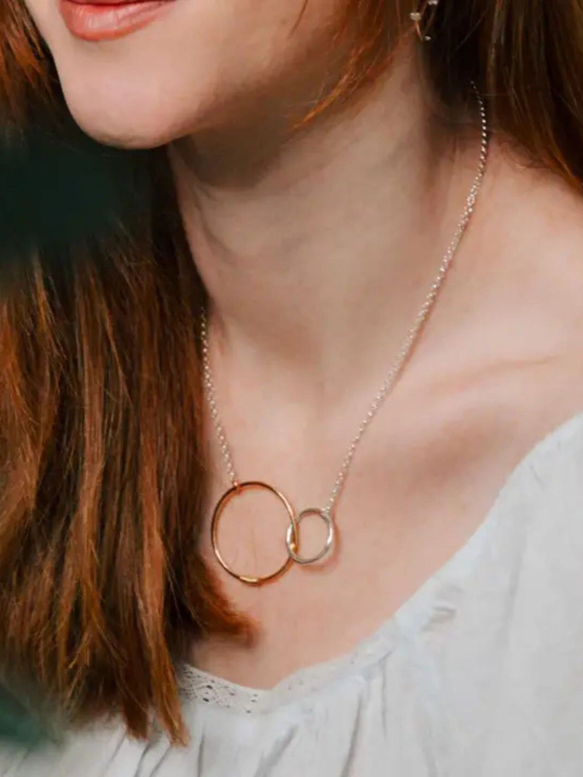 - Size: Gold circle: 1.25", Sterling silver circle: .75", pendant approx 1.75" across
