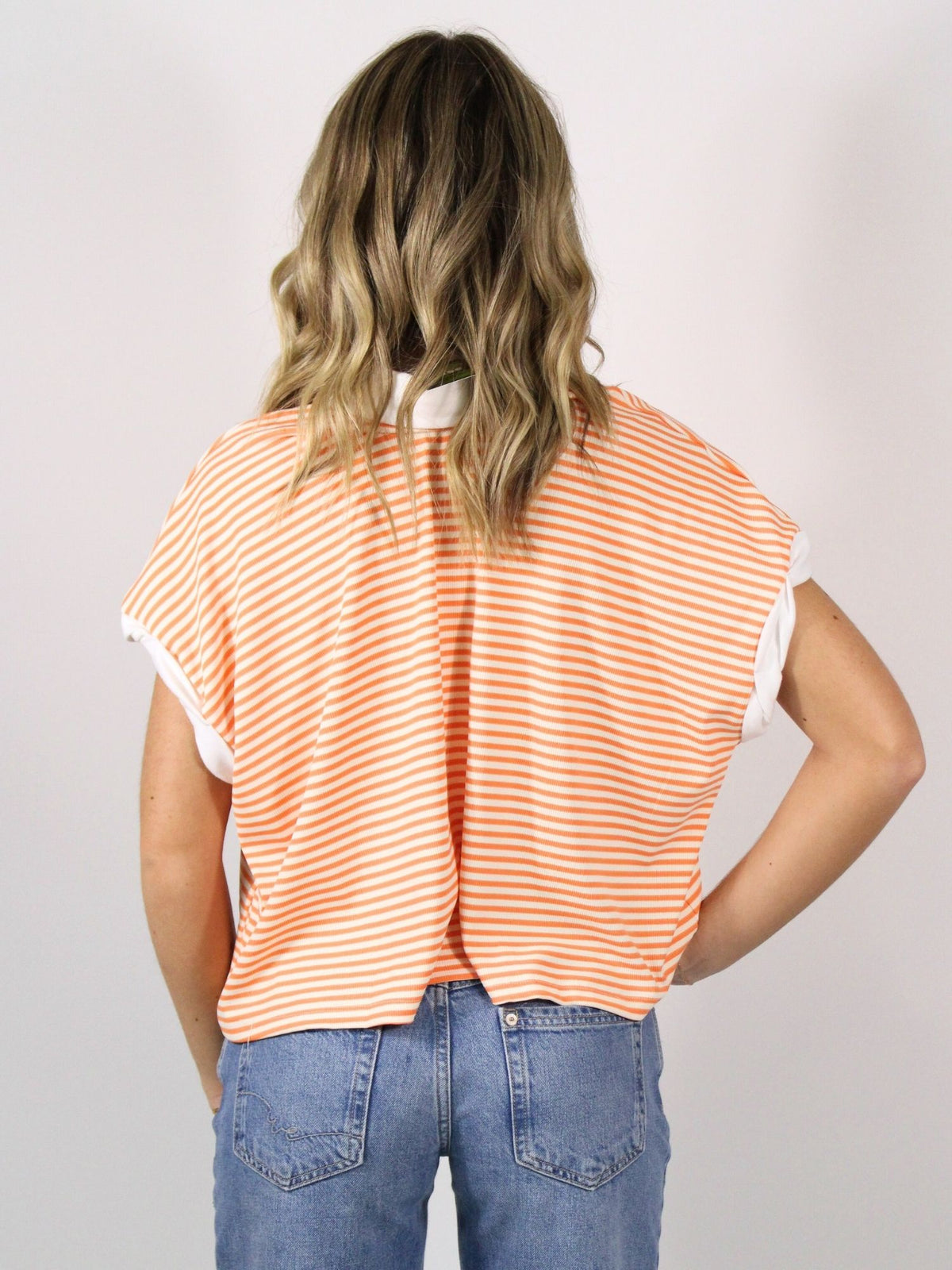 Prep meets pep in the Vol Victory Striped Polo Top—a cropped collared tee designed to bring big orange energy to your Tennessee gameday wardrobe. With a classic stripe print, button-front closure, and laid-back drop shoulders, this top delivers effortless style with just the right amount of spirit. The cropped fit makes it perfect for pairing with high-rise jeans, skirts, or cutoffs, while the breathable fabric keeps you cool from tailgate to touchdown. Whether you're headed to Neyland or celebrating from home, this top is a boutique favorite for Vols fans who want to look cute and collegiate.