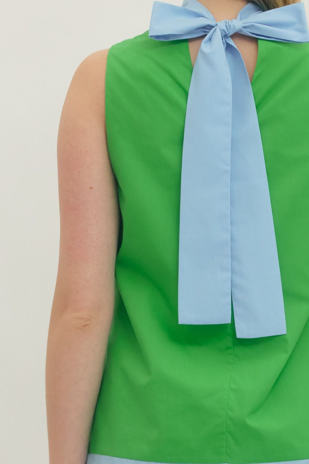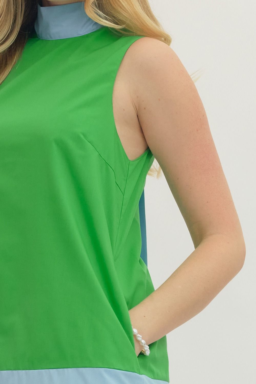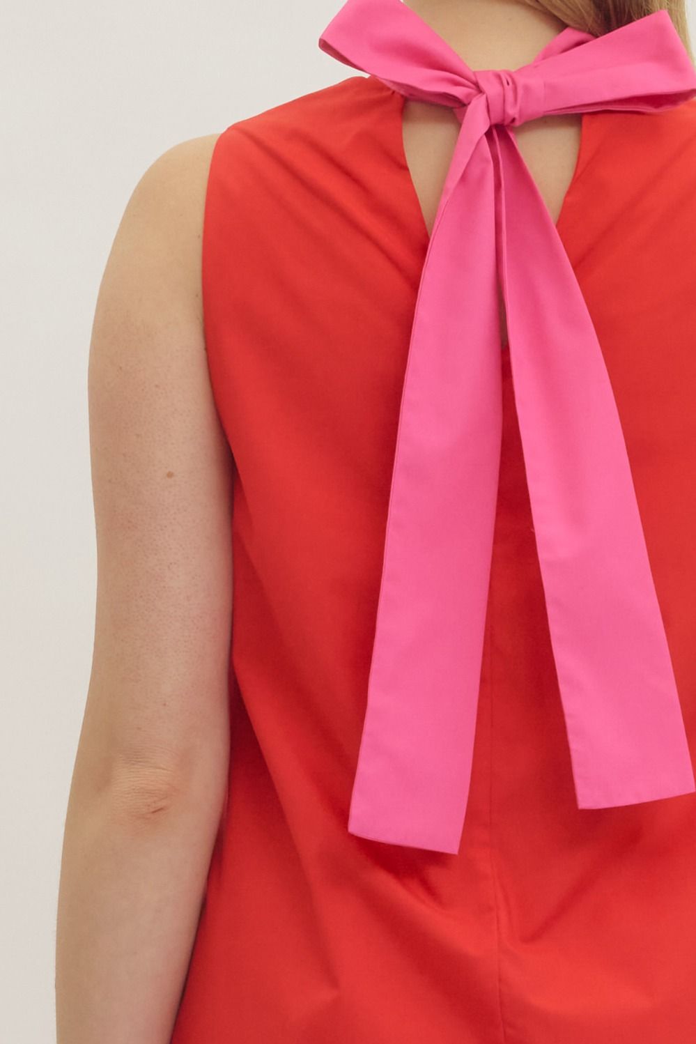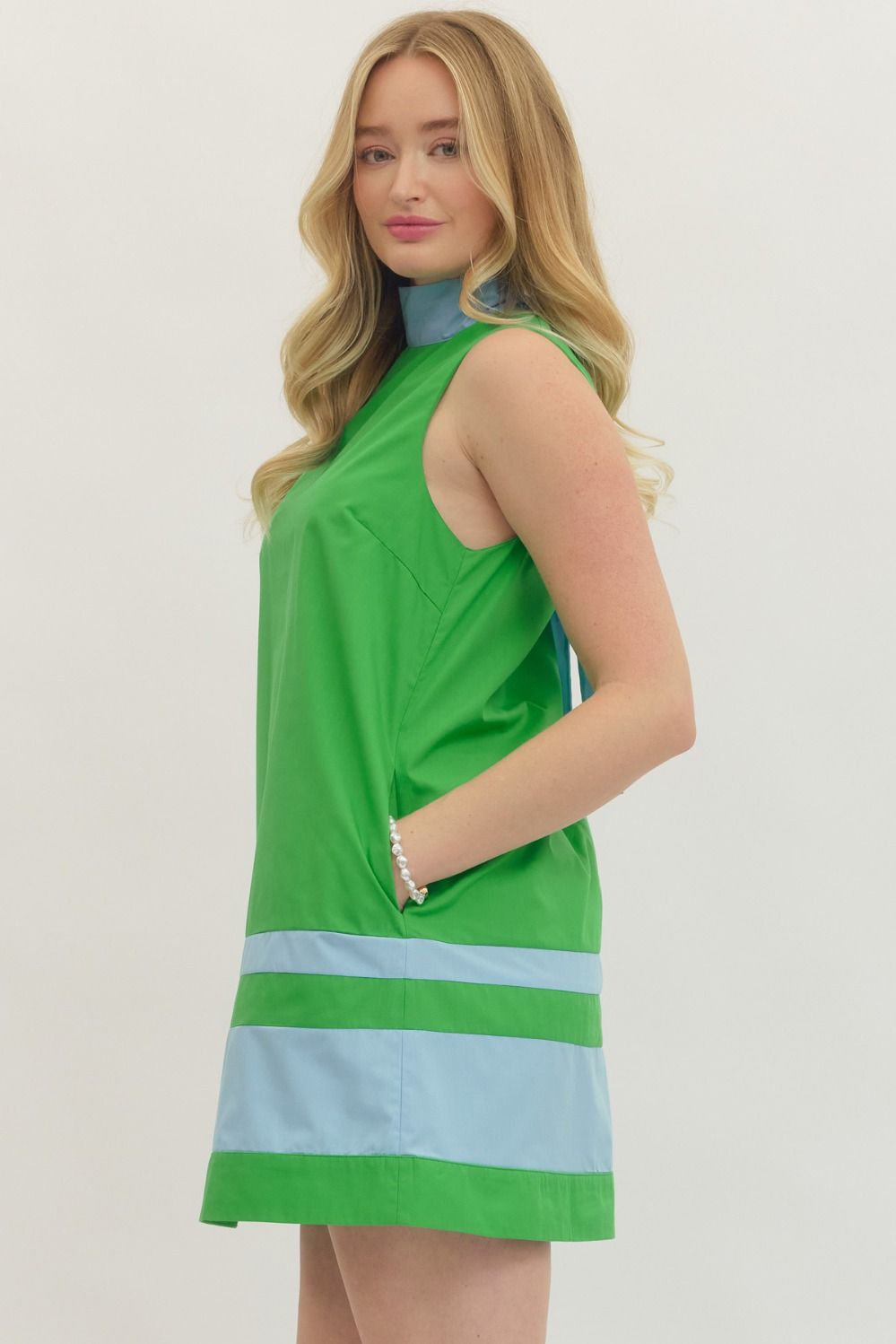 Step into effortless style with this sleeveless mini dress, designed with bold contrast banding for a modern twist. Features a tie closure at the back neckline, convenient side pockets, and a fully lined silhouette for a smooth, comfortable fit. Perfect for day-to-night wear.