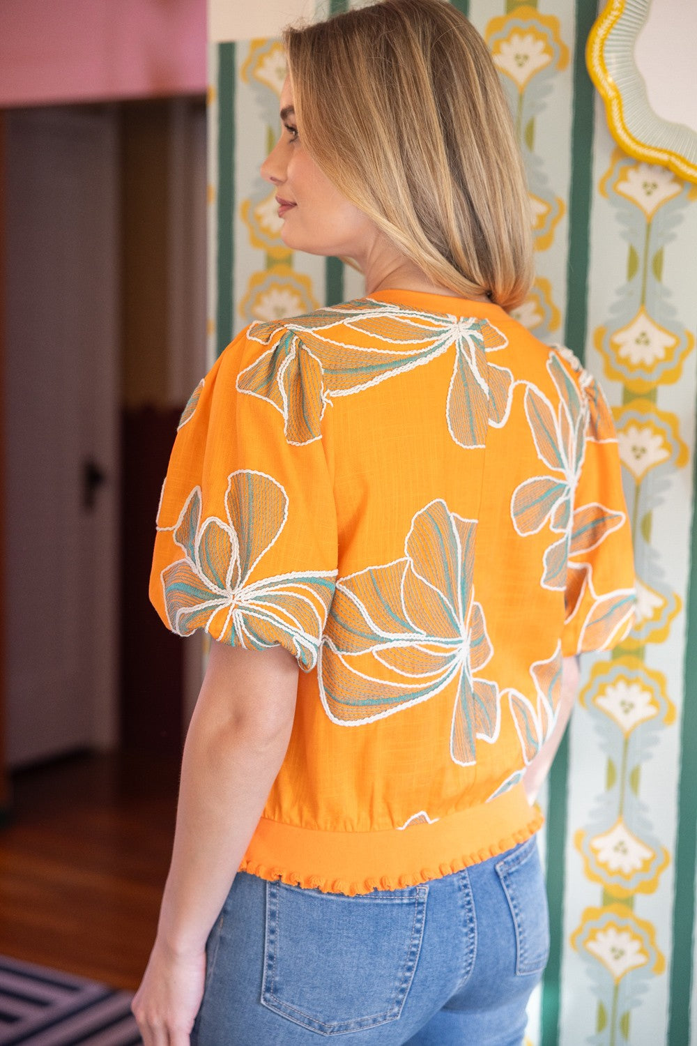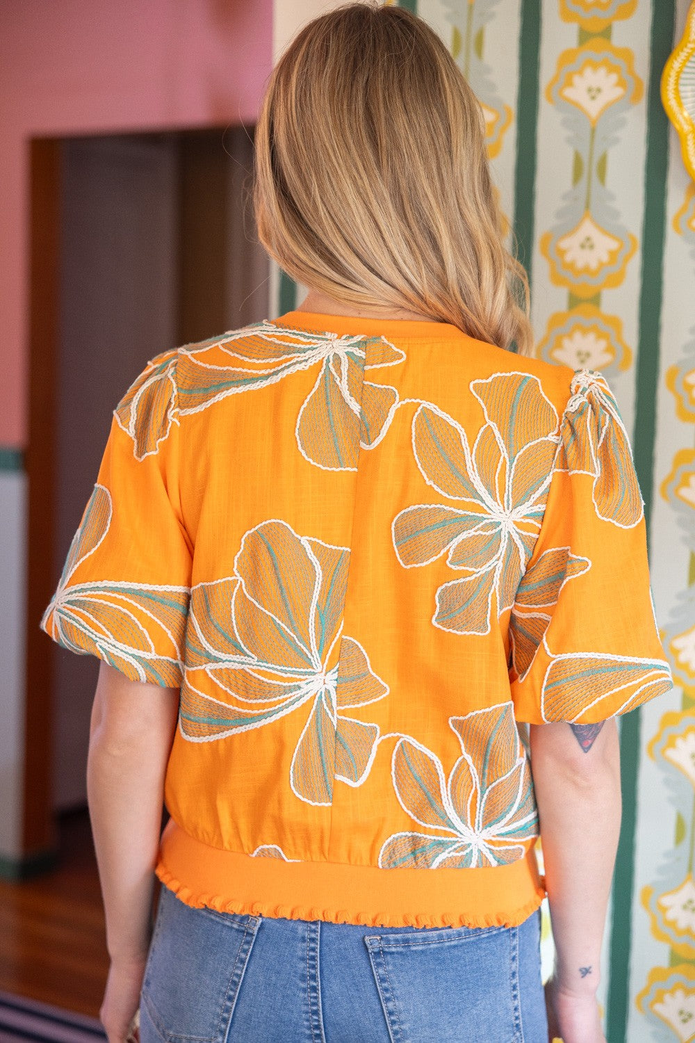 Orange Blossom Embroidered Top