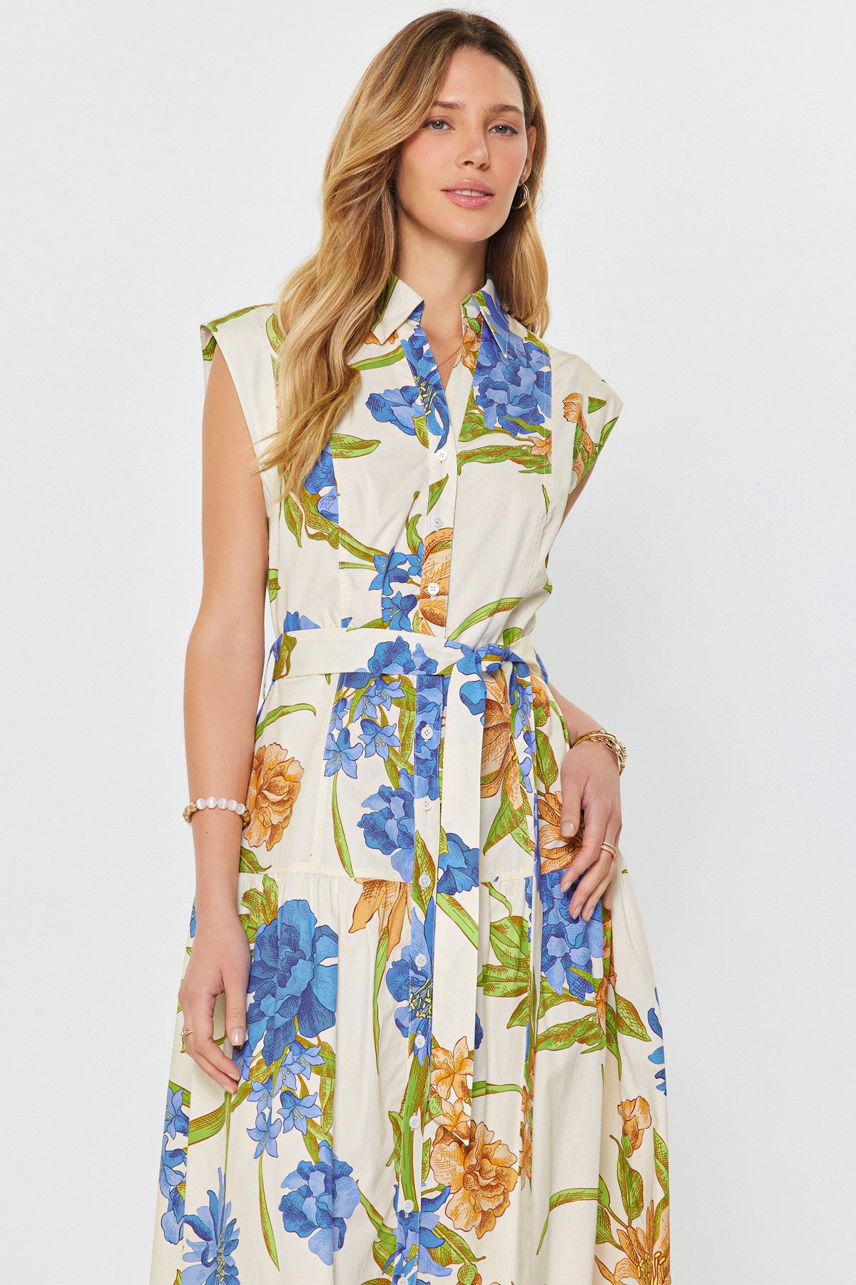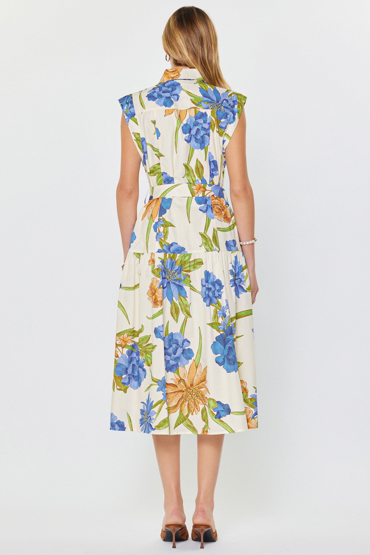 Step into effortless elegance with the Botanical Blooms Button-Down Midi Dress. Featuring a vibrant floral digital print, this dress is designed with short cap sleeves and a classic shirt collar for a polished look. The button-front closure and self-tie waist belt create a flattering silhouette, while the tiered midi-length skirt adds feminine movement. Fully lined for comfort, this dress is perfect for garden parties, brunches, or any day you want to feel effortlessly chic.