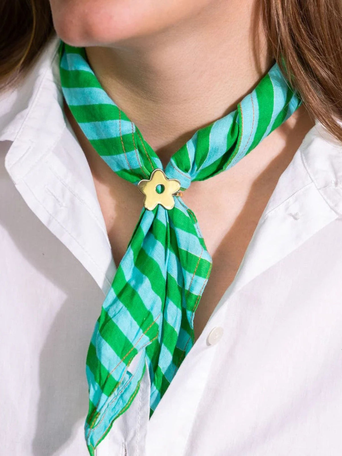 Meet your new go-to accessory. The Naomi Stripe Bandana transforms any look with endless styling possibilities—wear it around your neck, tie it to your bag, secure your hair, or let your creativity lead the way. Screen-printed with striking stripe details, this timeless piece brings effortless style to every outfit.