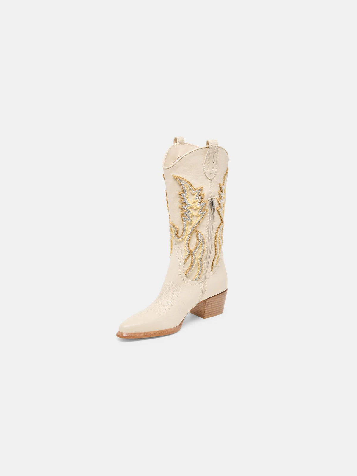 Step into the spotlight with the Dolce Vita Vila Western Boot, where sustainable style meets classic cowboy charm. These knee-high beauties feature intricate stitching, a stacked block heel, and a sharp pointed toe—plus handy pull tabs that make slipping them on a breeze. Perfect for channeling your inner cowgirl or just adding a playful, western flair to any outfit. Ready to ride or just strut your stuff? These boots have got you covered.